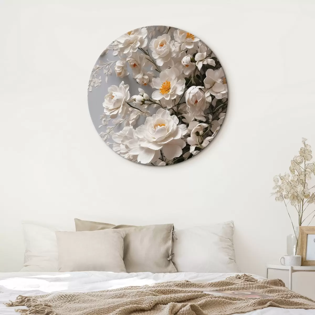 Quadri rotondi Fiori e foglie bianche su sfondo bianco r44465