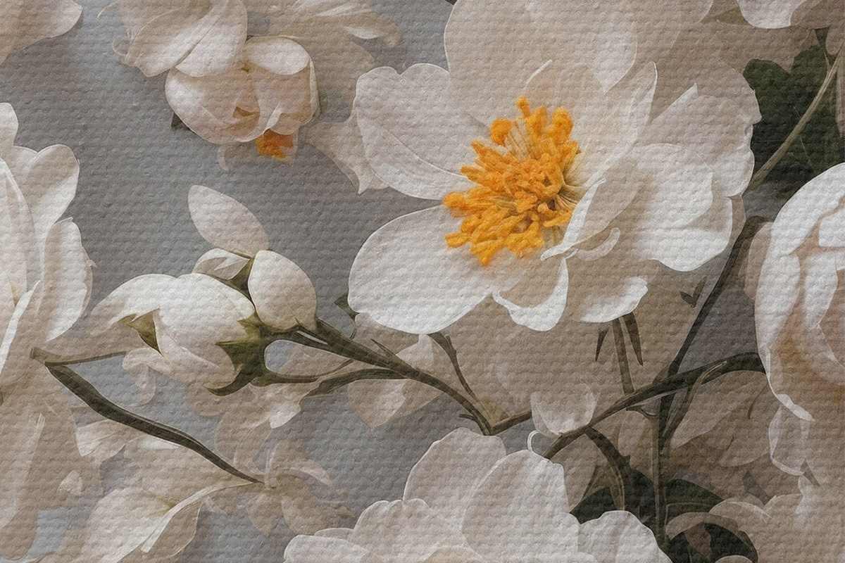Immagine Fiori e foglie bianche su sfondo bianco Nr r44465