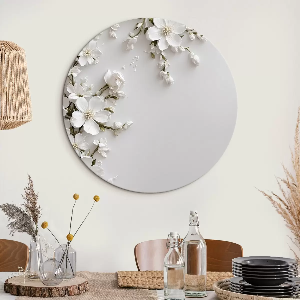 Quadri rotondi Fiori bianchi su sfondo bianco r44466
