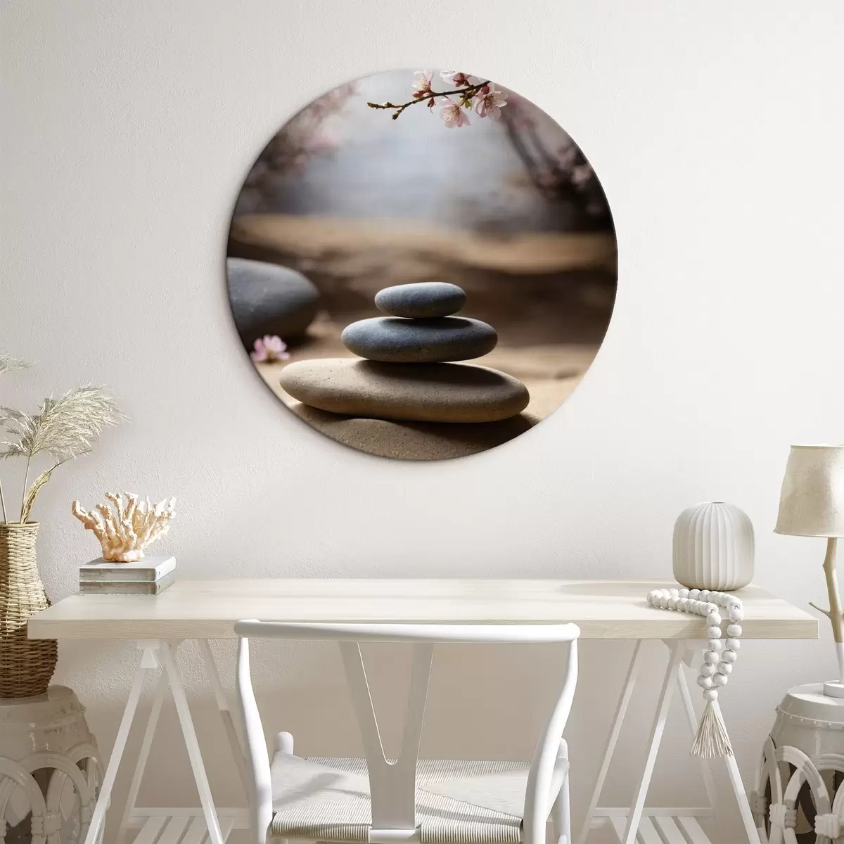 Quadri rotondi Pietre sulla sabbia su sfondo sfocato r44475