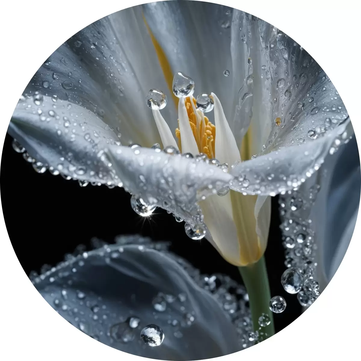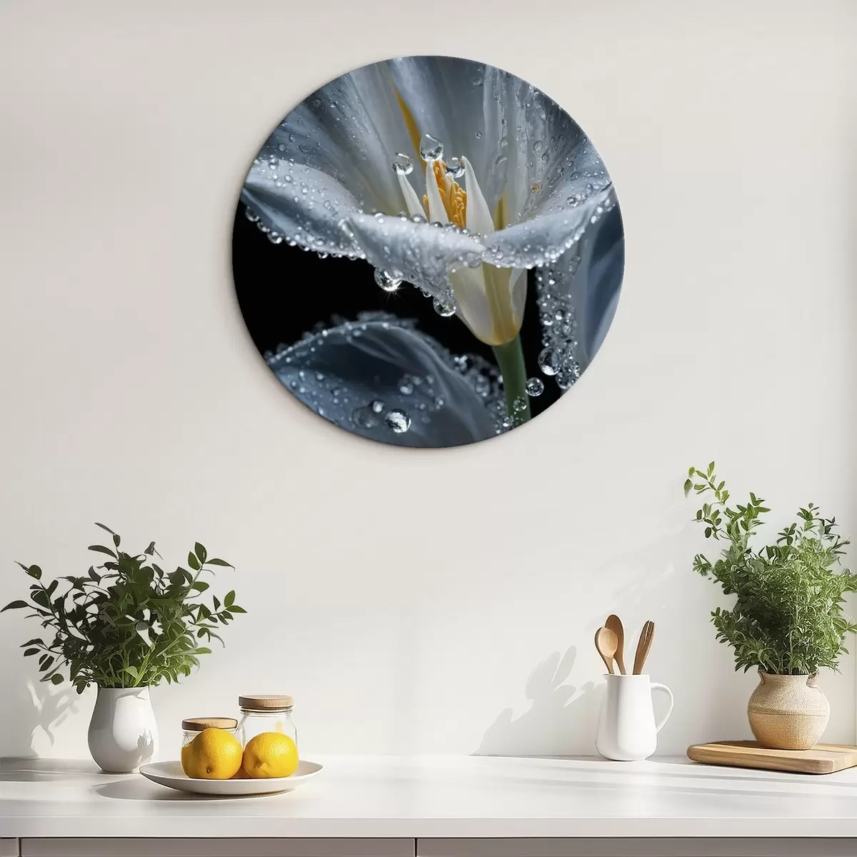 Quadri rotondi Fiore trasparente su sfondo nero r44479