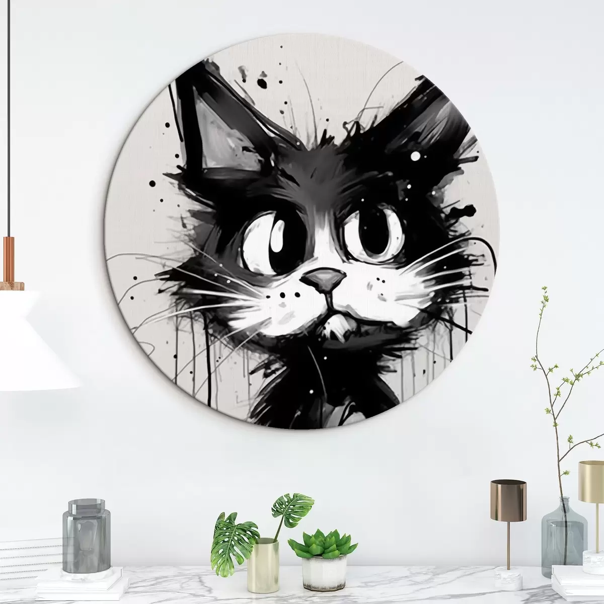 Quadri rotondi Gatto in stile schizzo con schizzi di vernice r44483