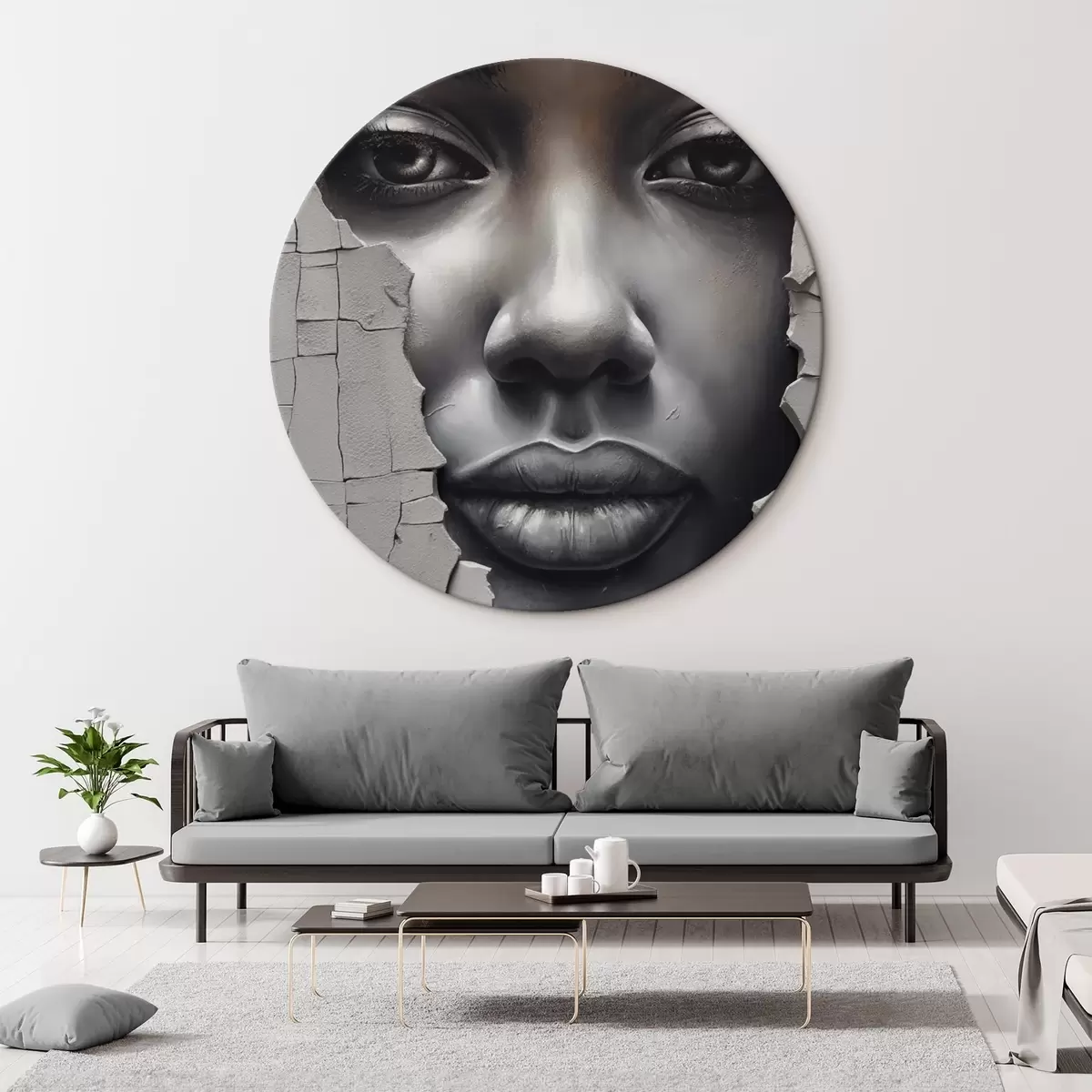 Quadri rotondi Il volto nelle crepe del muro r44495