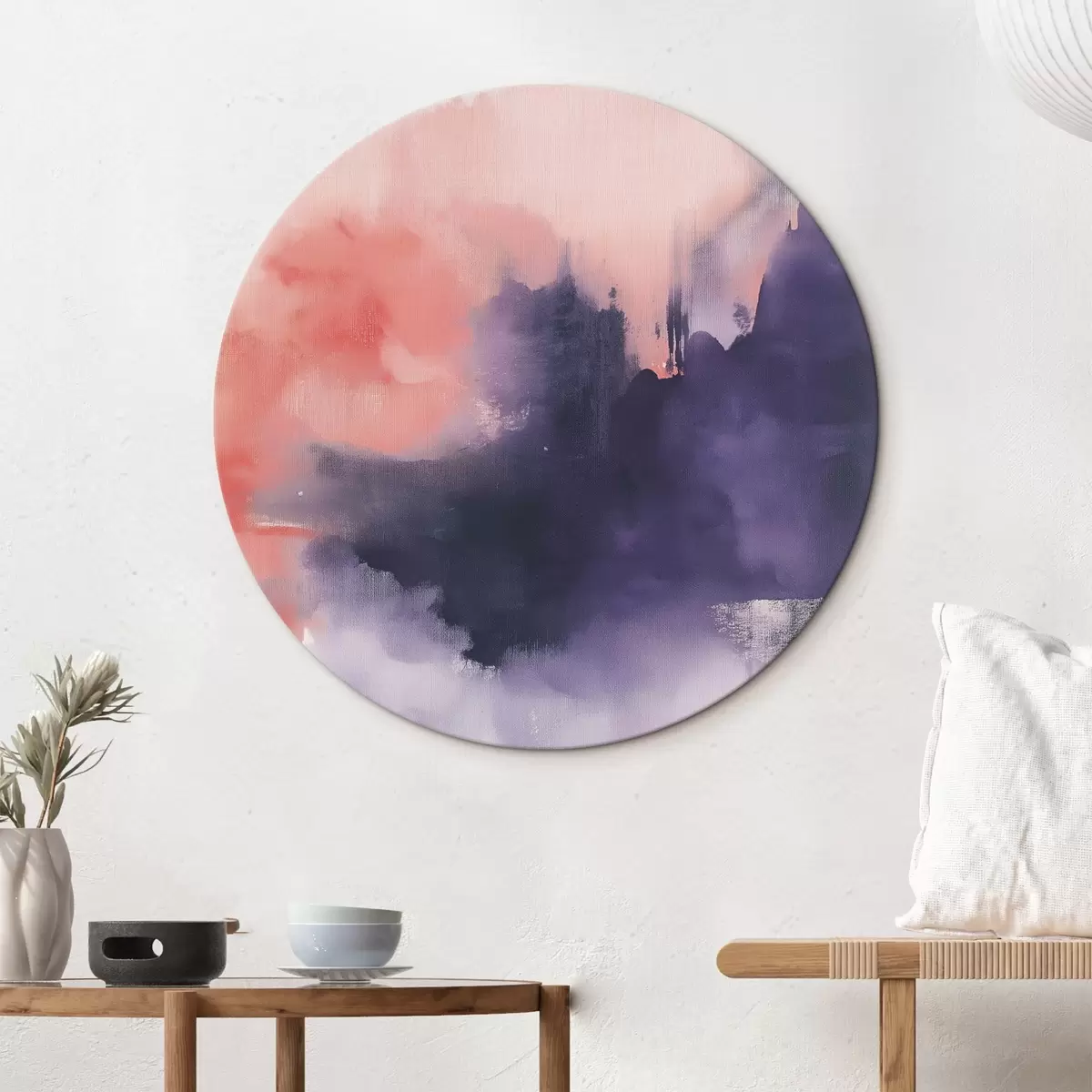Quadri rotondi Astrazione in stile acrilico, pennellate, viola e rosa r44507