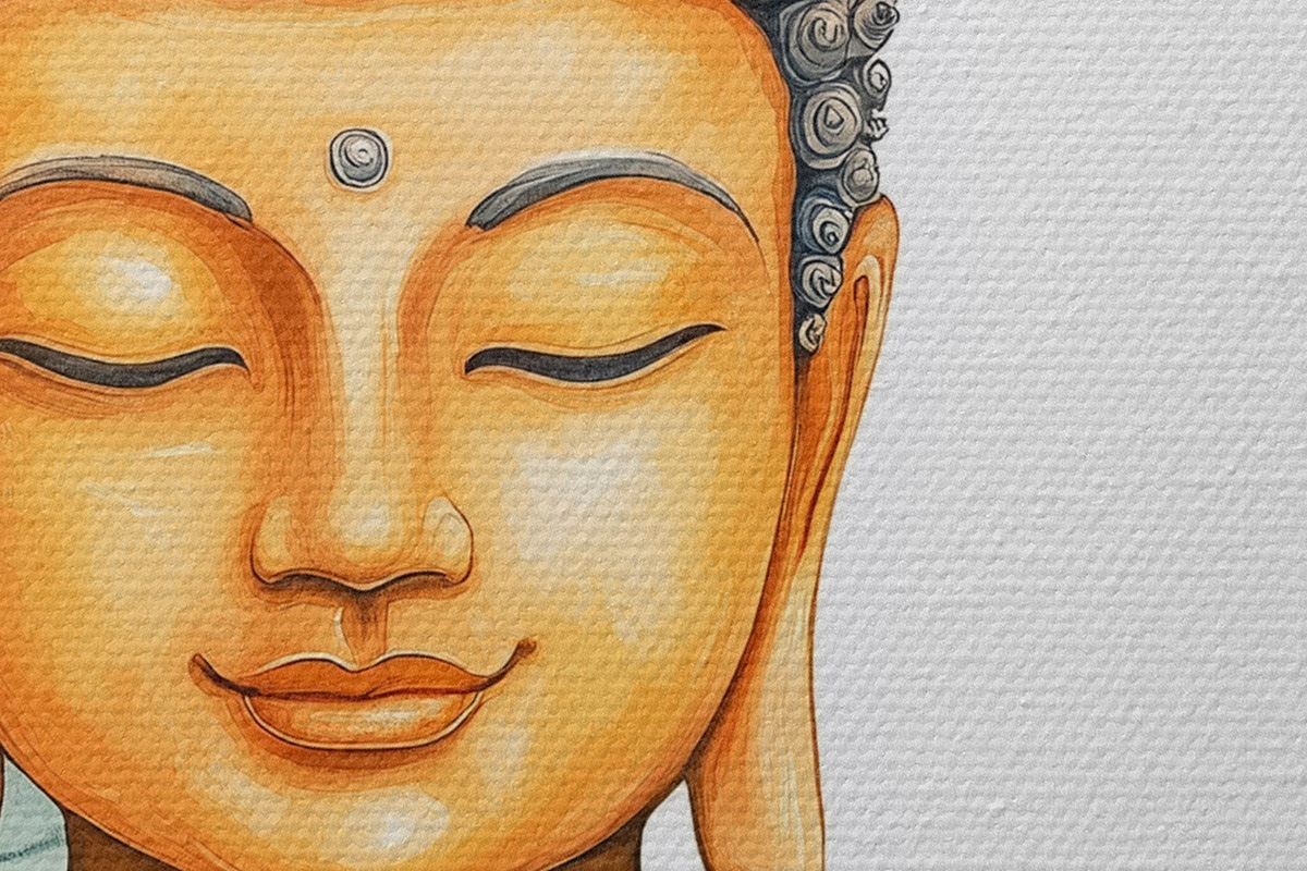 Immagine Buddha circondato da fiori arancioni, stile acquerello Nr r44508