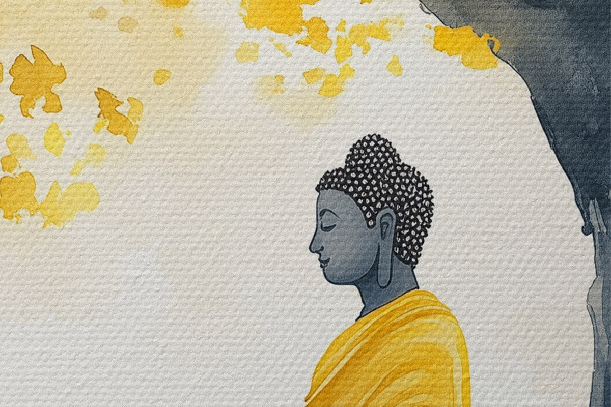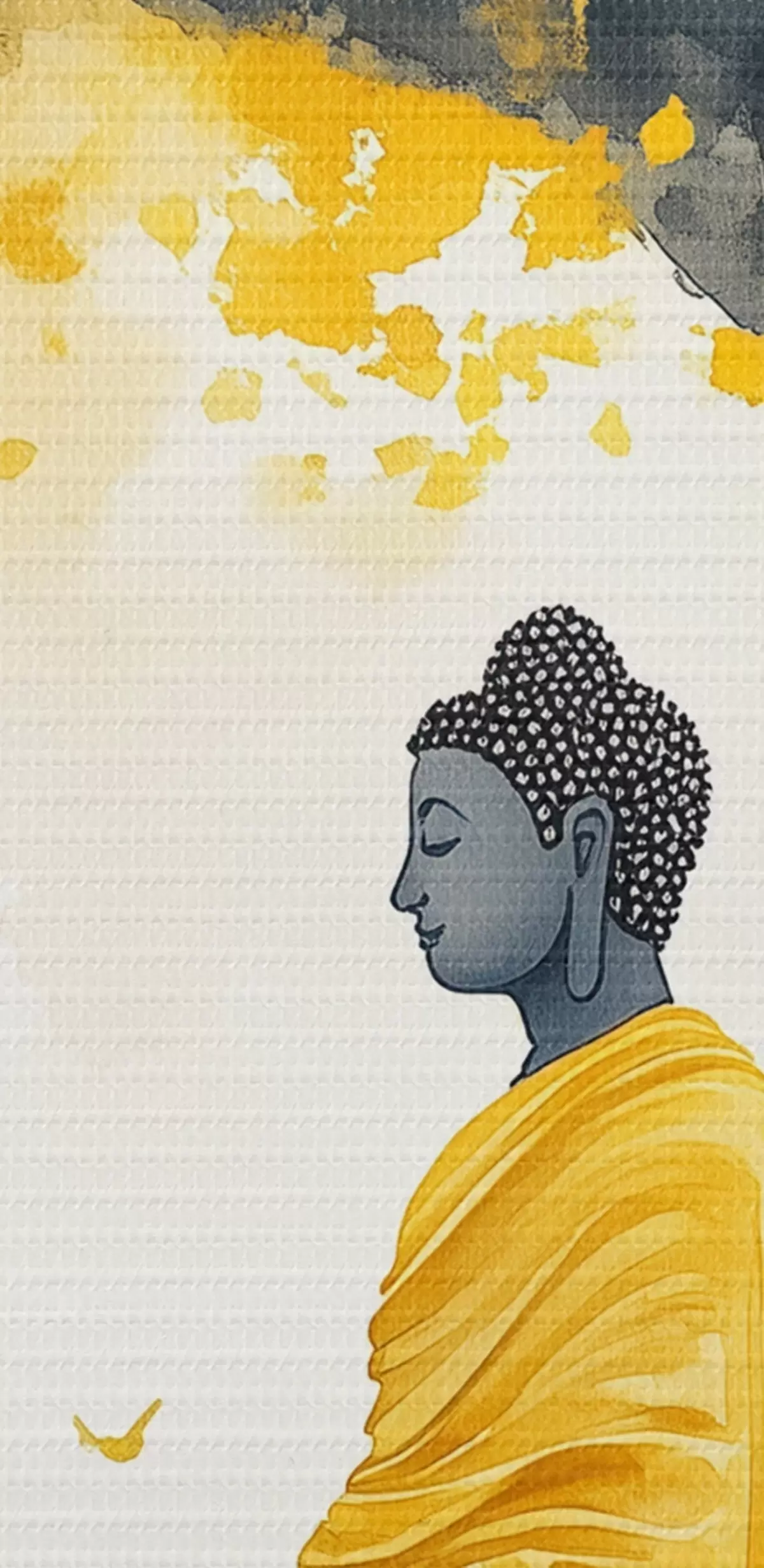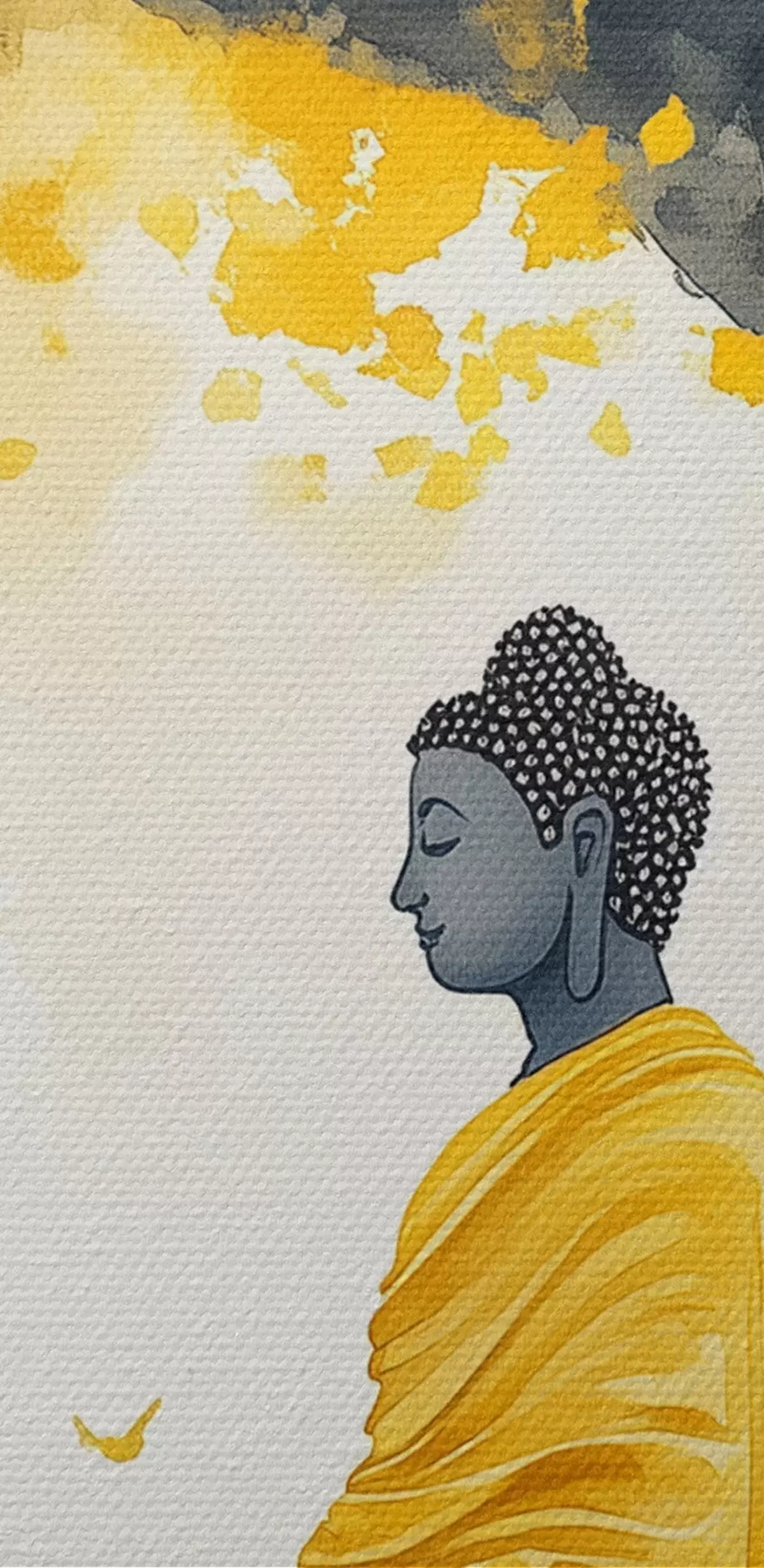 Immagine Buddha in meditazione sotto l'albero, colori giallo e grigio Nr r44509