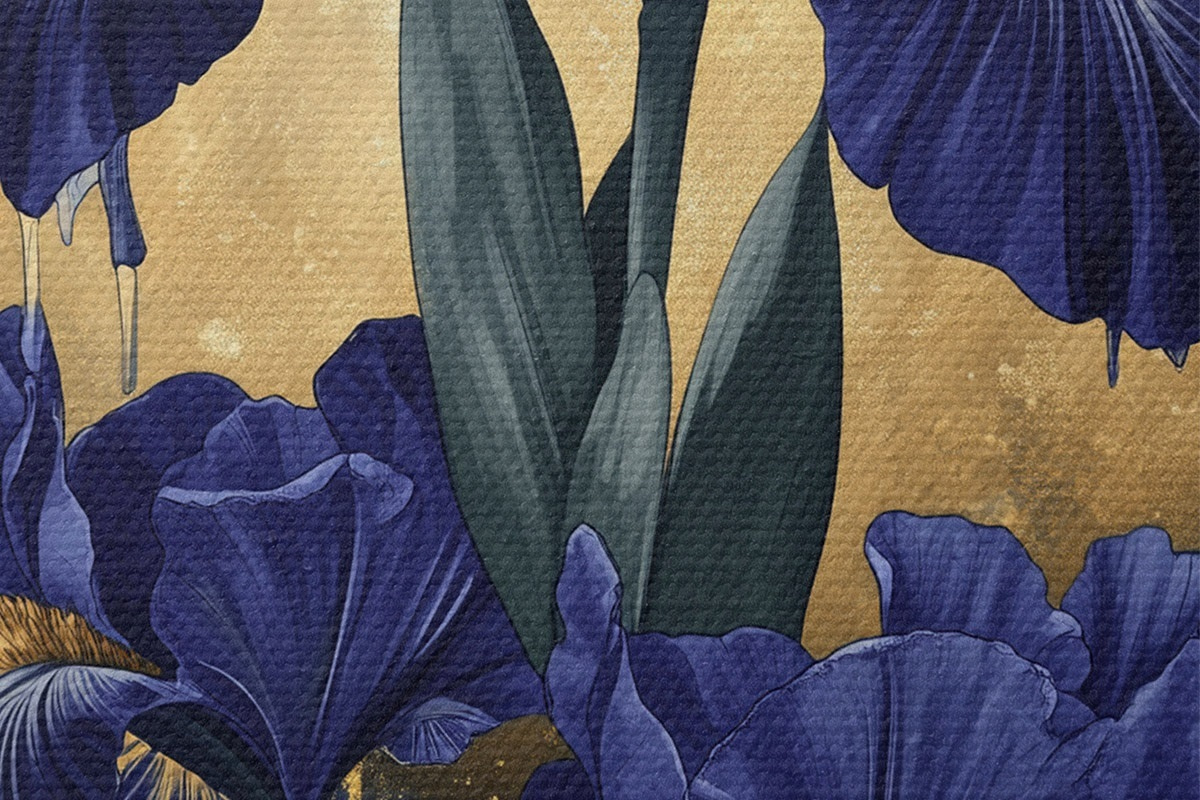 Immagine Fiori di iris, luna splendente, cielo notturno, colori blu Nr r44510