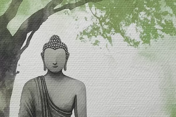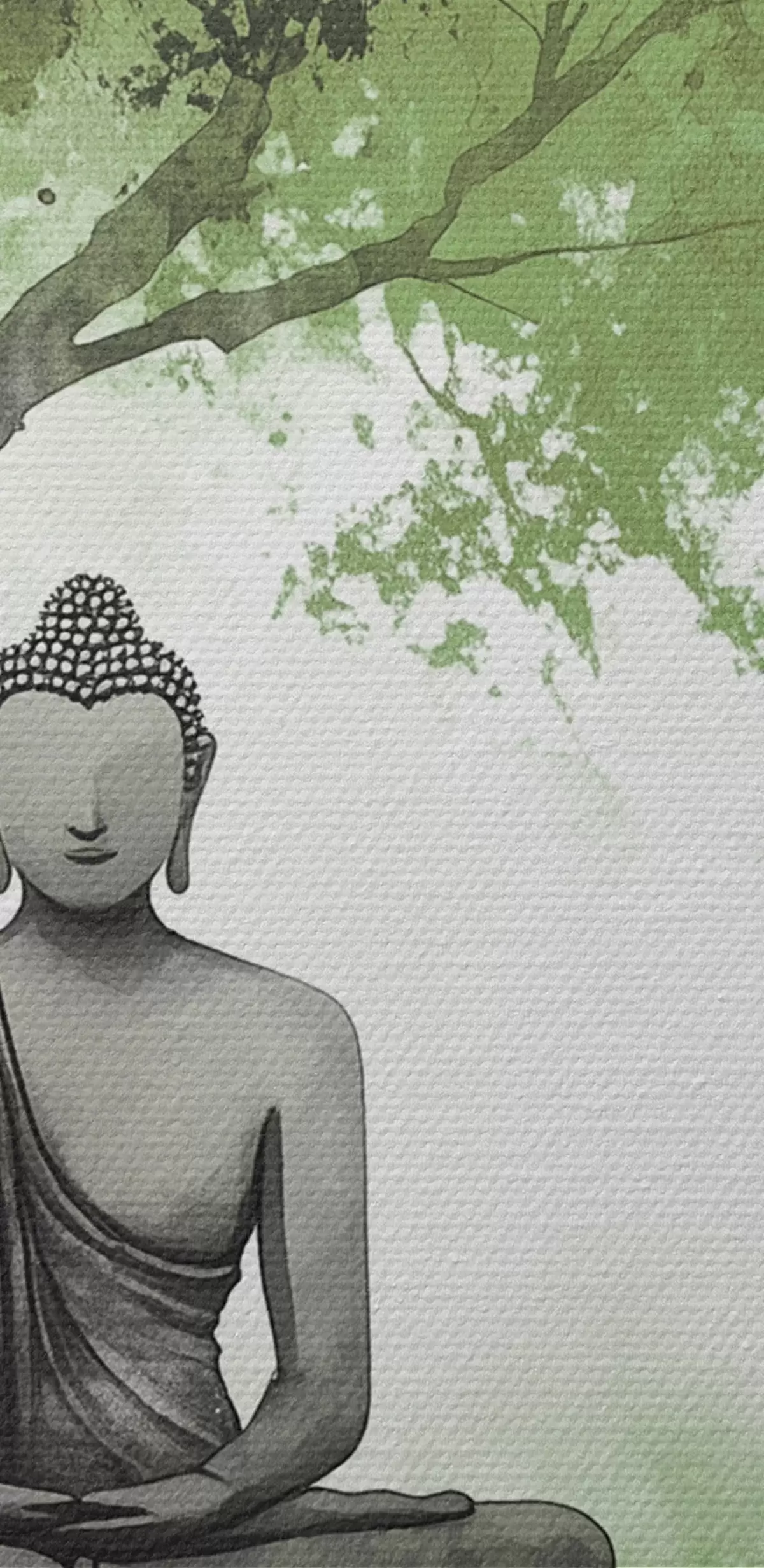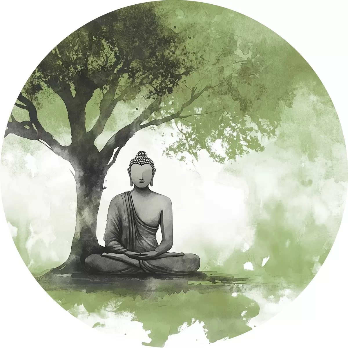 Immagine Buddha seduto sotto l'albero, meditazione, spirituale, colori verdi Nr r44512v1