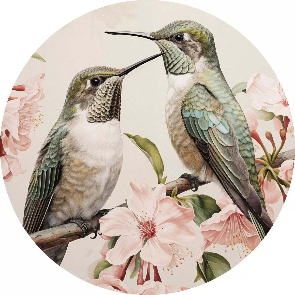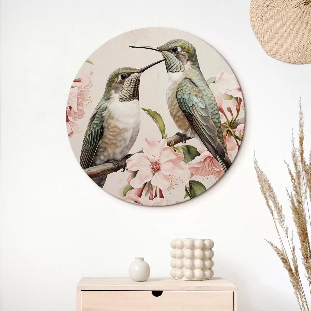 Quadri rotondi Una coppia di uccelli su un ramo r44550
