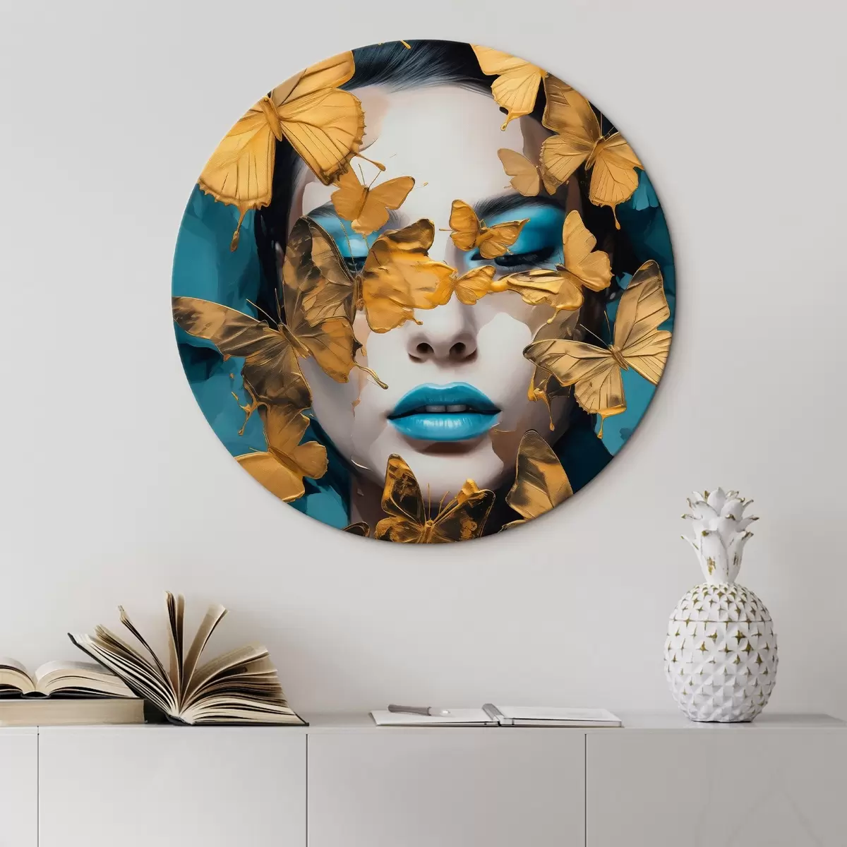 Quadri rotondi Ritratto di ragazza con farfalle r44583