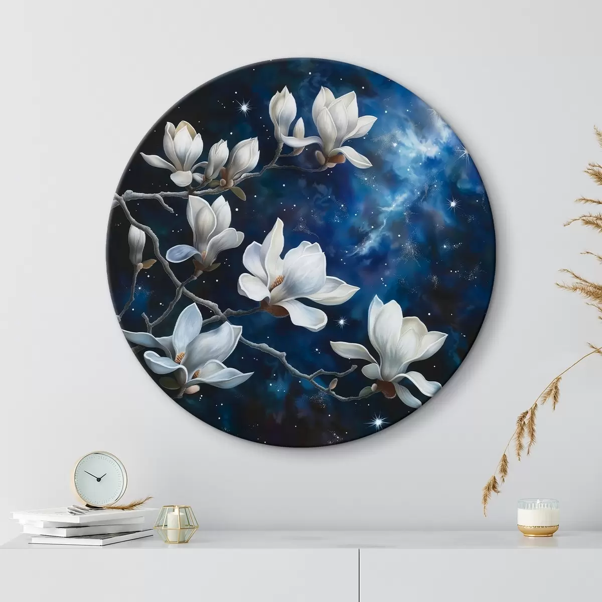 Quadri rotondi Fiori di magnolia contro il cielo r44585
