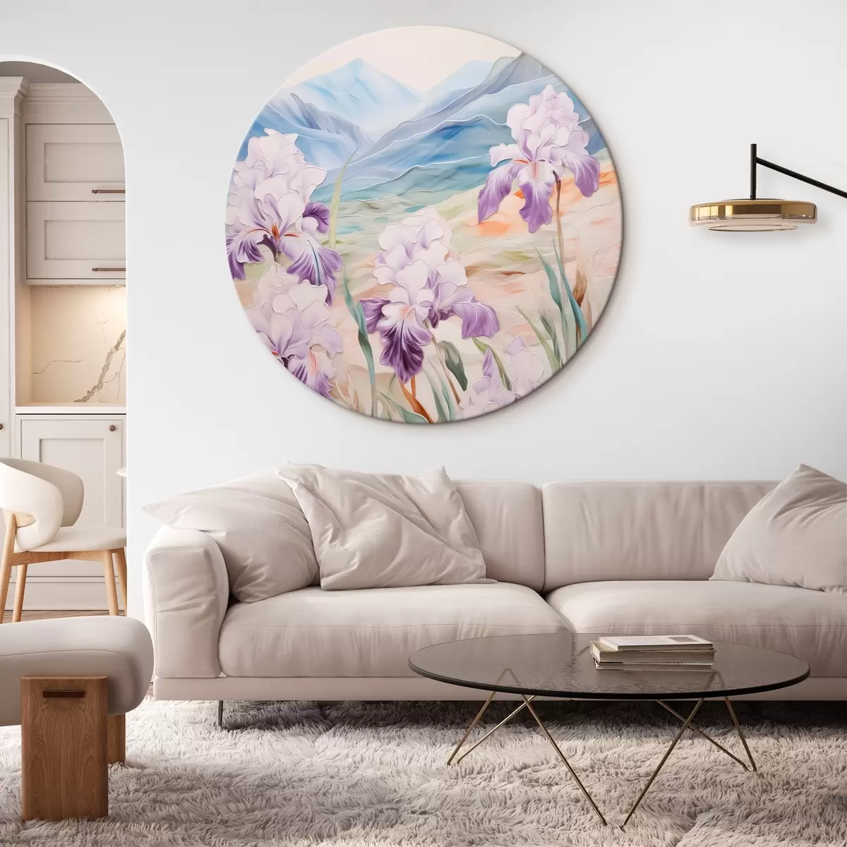 Quadri rotondi Iris sullo sfondo delle montagne r44599