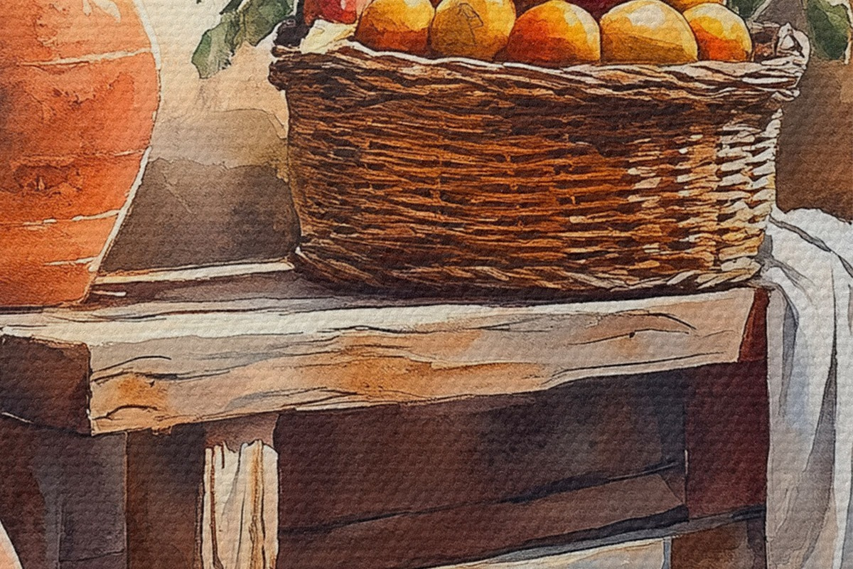 Immagine Vasi estetici e cesto di vimini con arance, Toscana, stile rustico Nr r44605