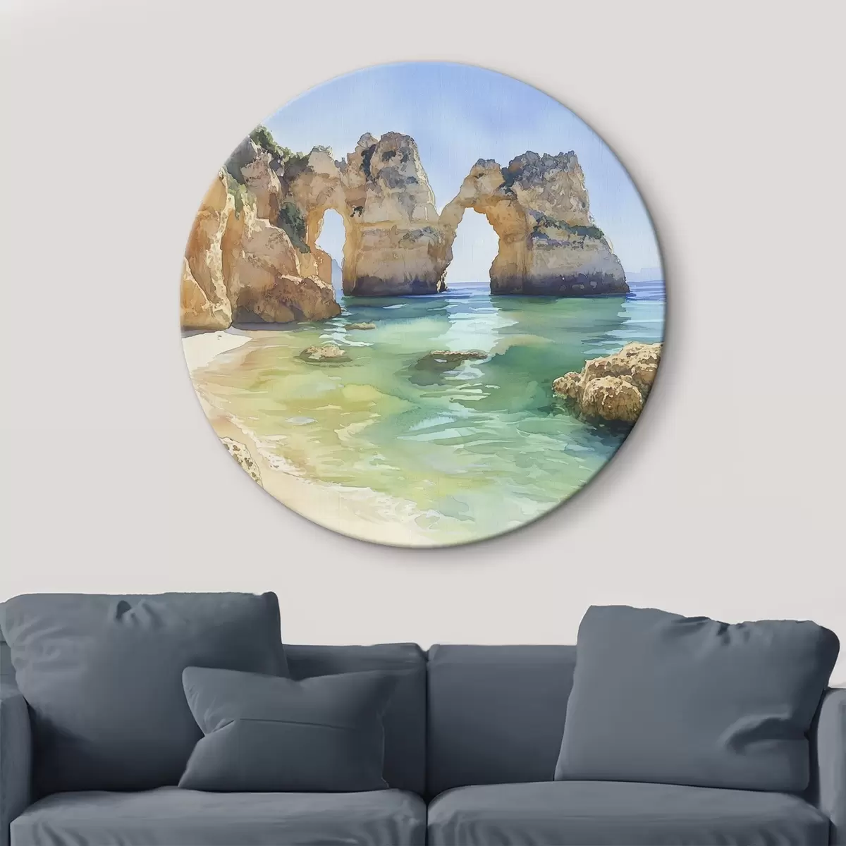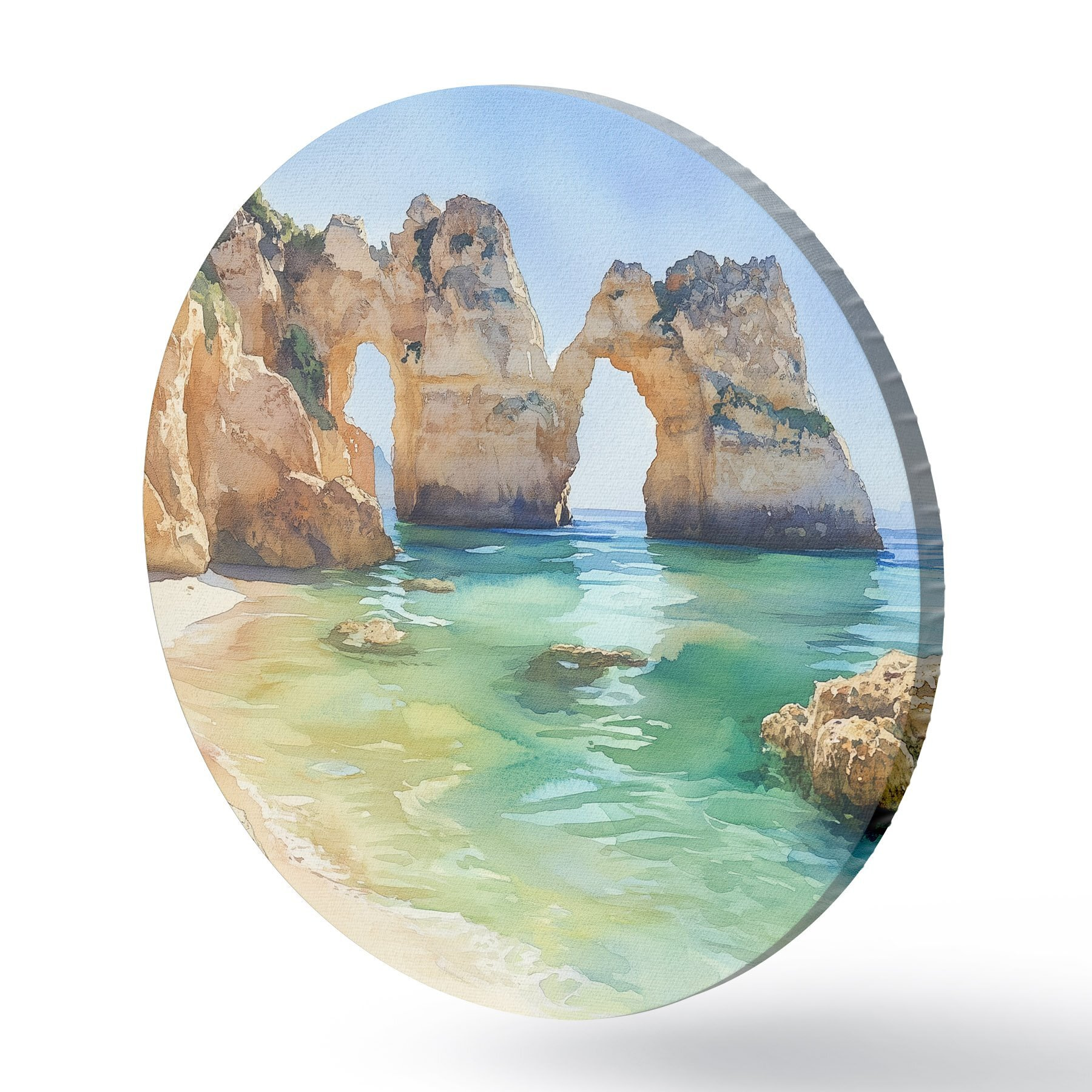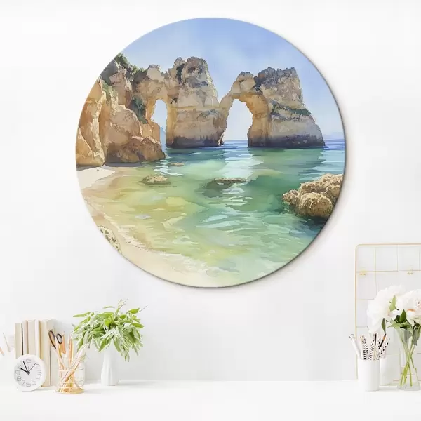 Quadri rotondi Spiaggia oceanica con scogliera, Portogallo, estate, acquamarina r44608