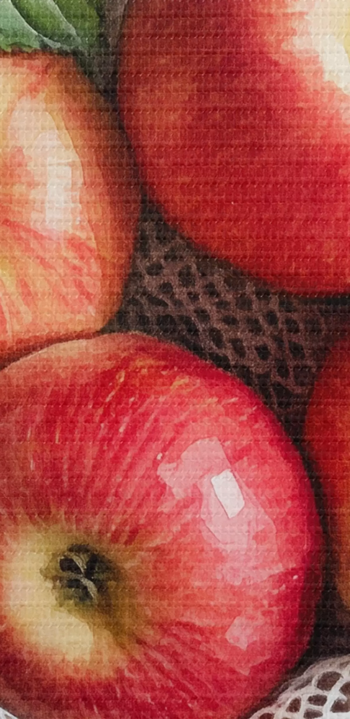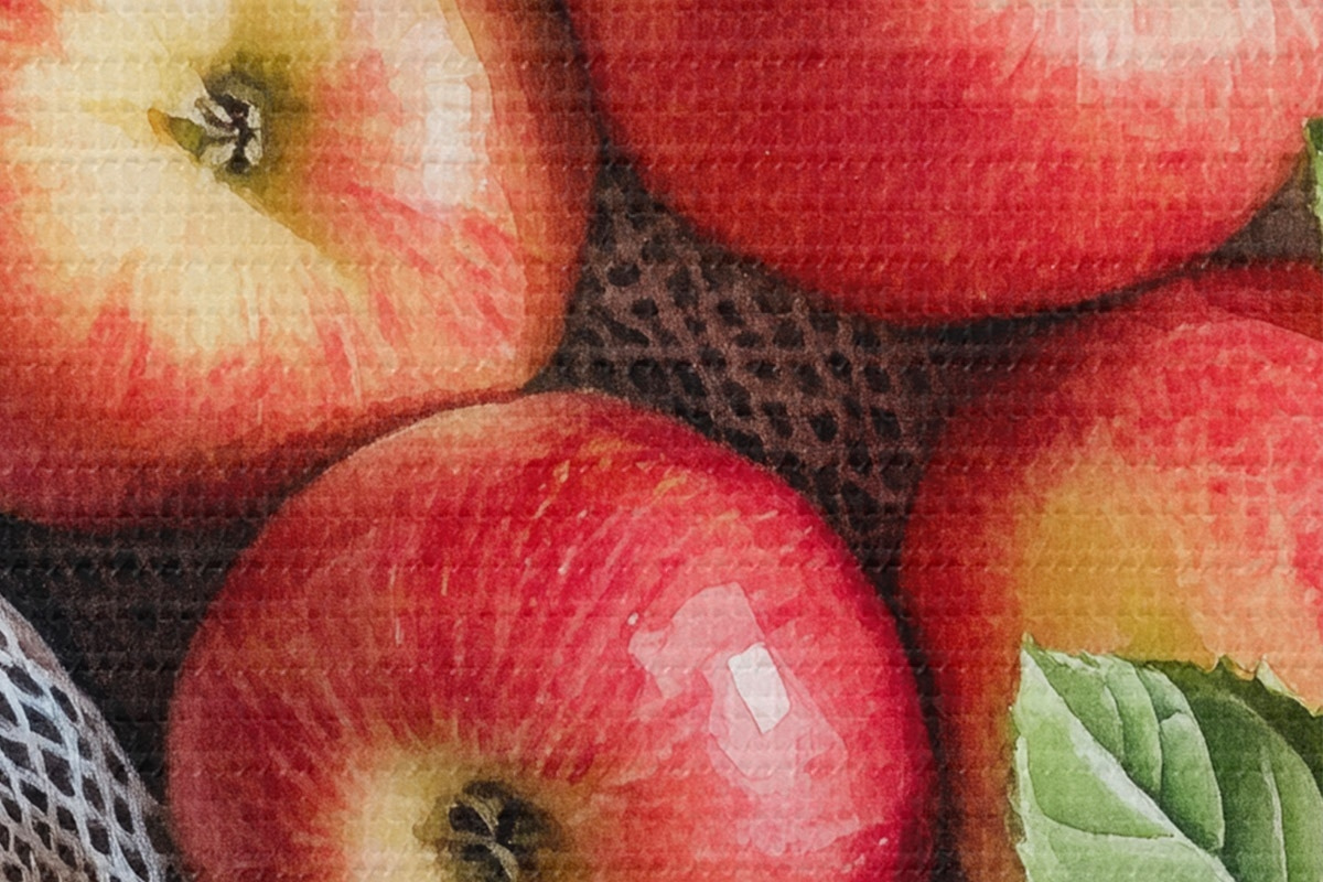 Immagine Mele rosse nel sacchetto di lino con foglie di menta, stile rustico, frutta Nr r44609