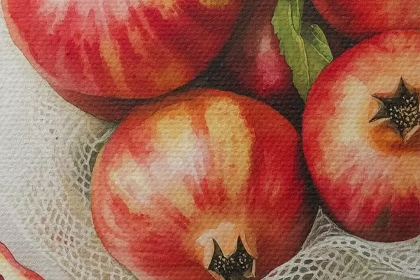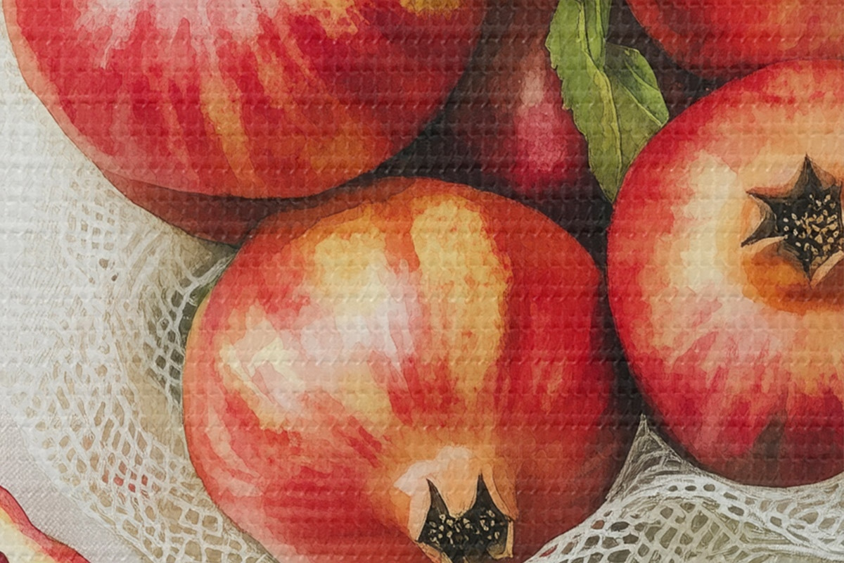 Immagine Melograni con foglie di menta sulle tovaglie di lino, stile rustico Nr r44611