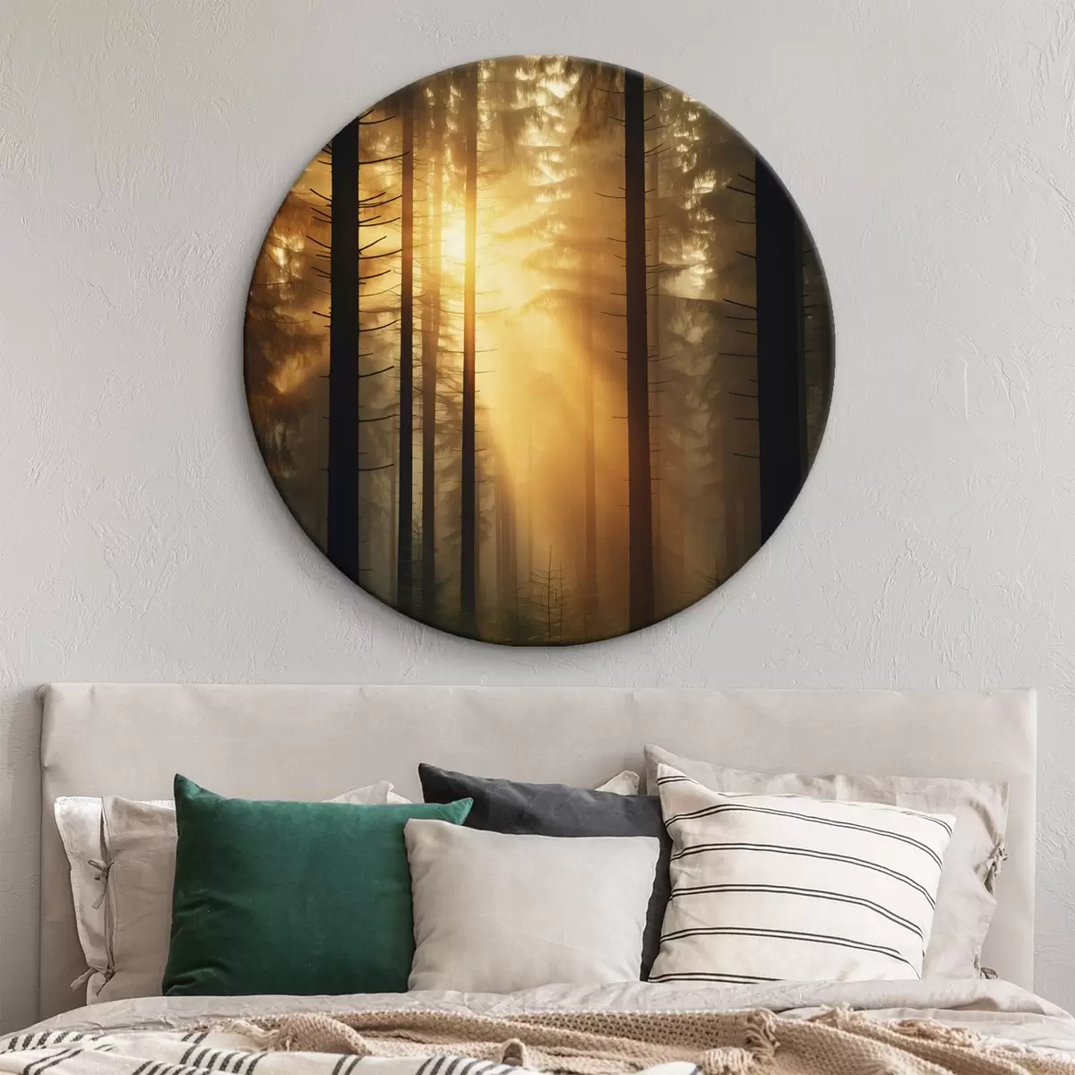 Quadri rotondi Fitta pineta con luce del tramonto, realismo, natura r44615