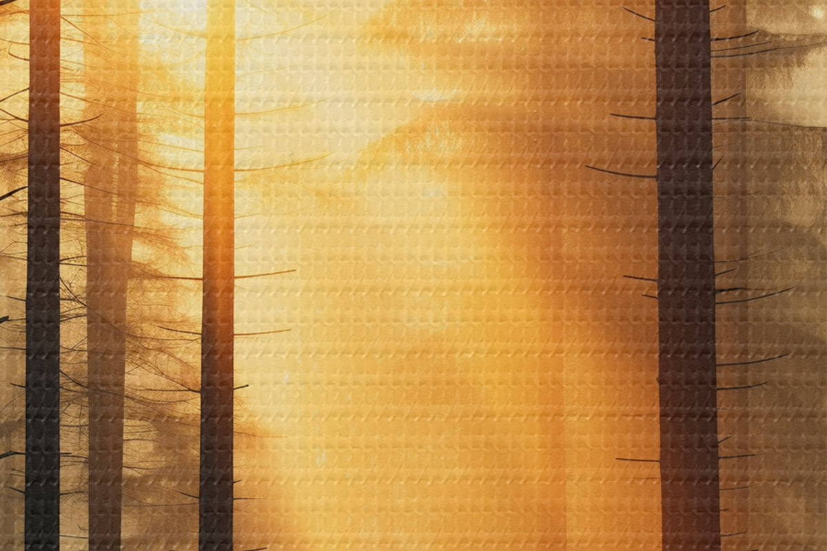 Immagine Fitta pineta con luce del tramonto, realismo, natura Nr r44615
