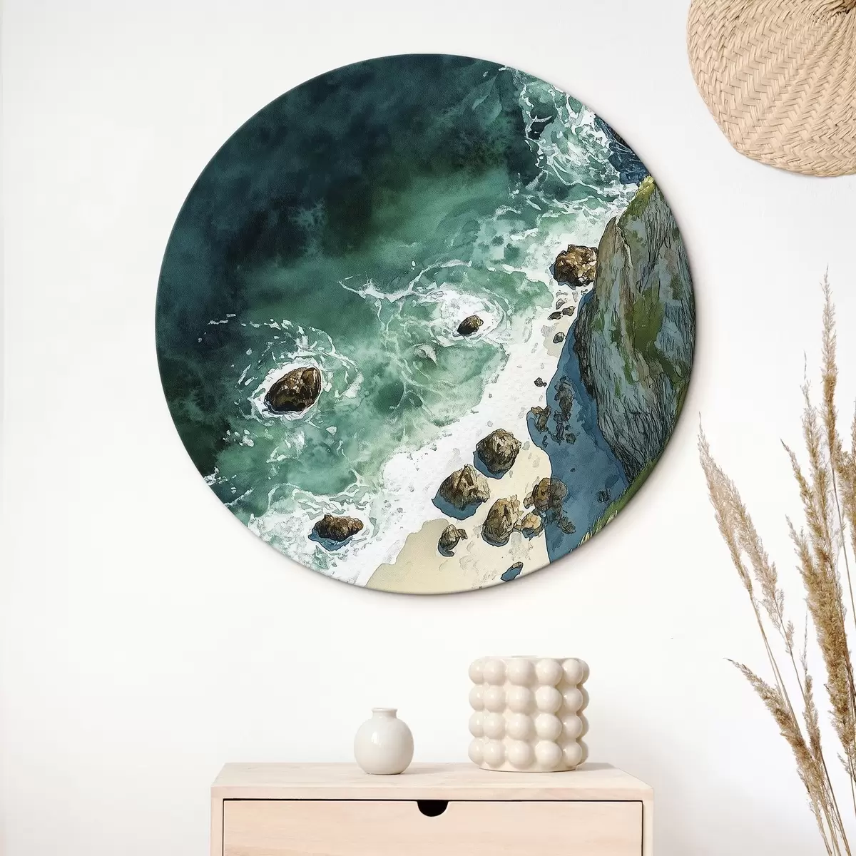 Quadri rotondi Acqua acquamarina, oceano, scogliere rocciose, Portogallo r44617