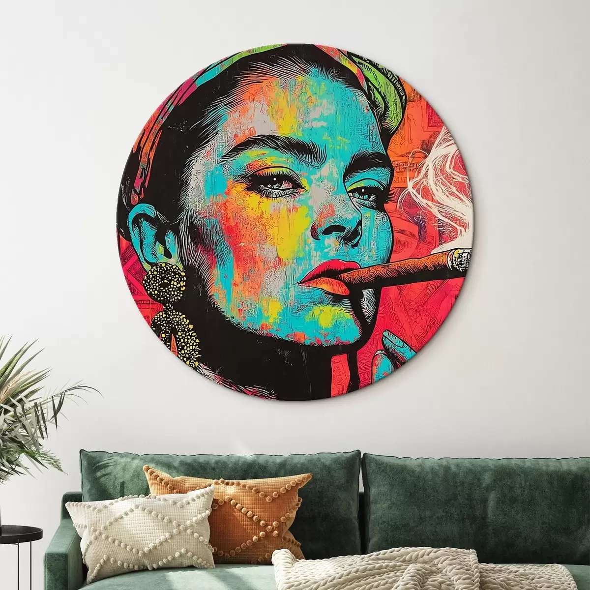 Quadri rotondi Ragazza con sigaro, stile pop art r44625