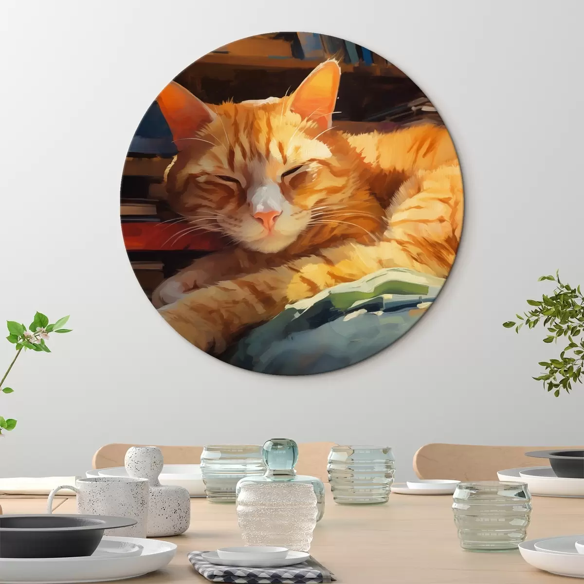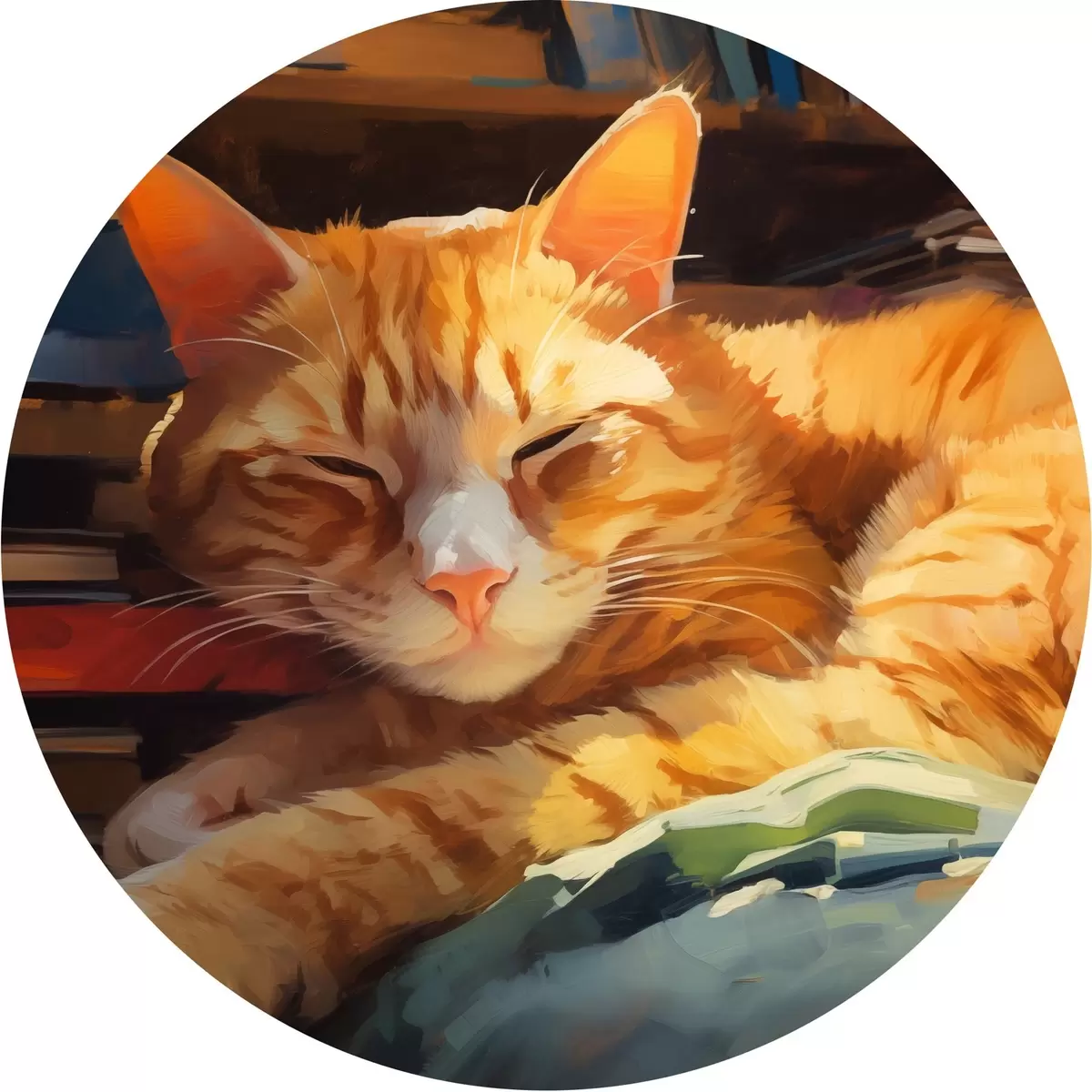 Quadri rotondi Gatto e libri r44656