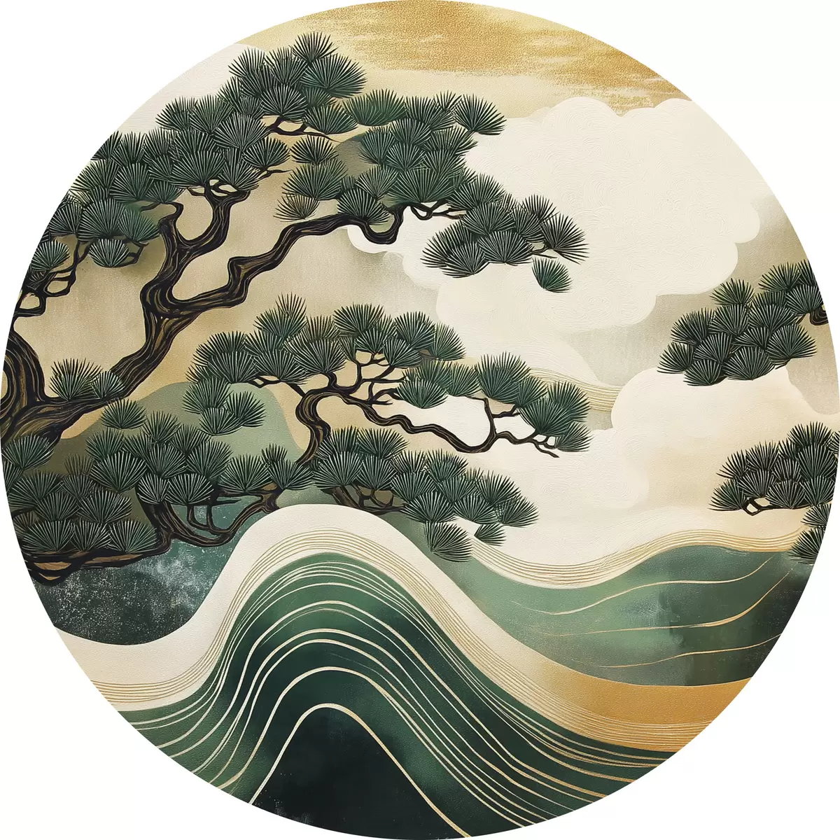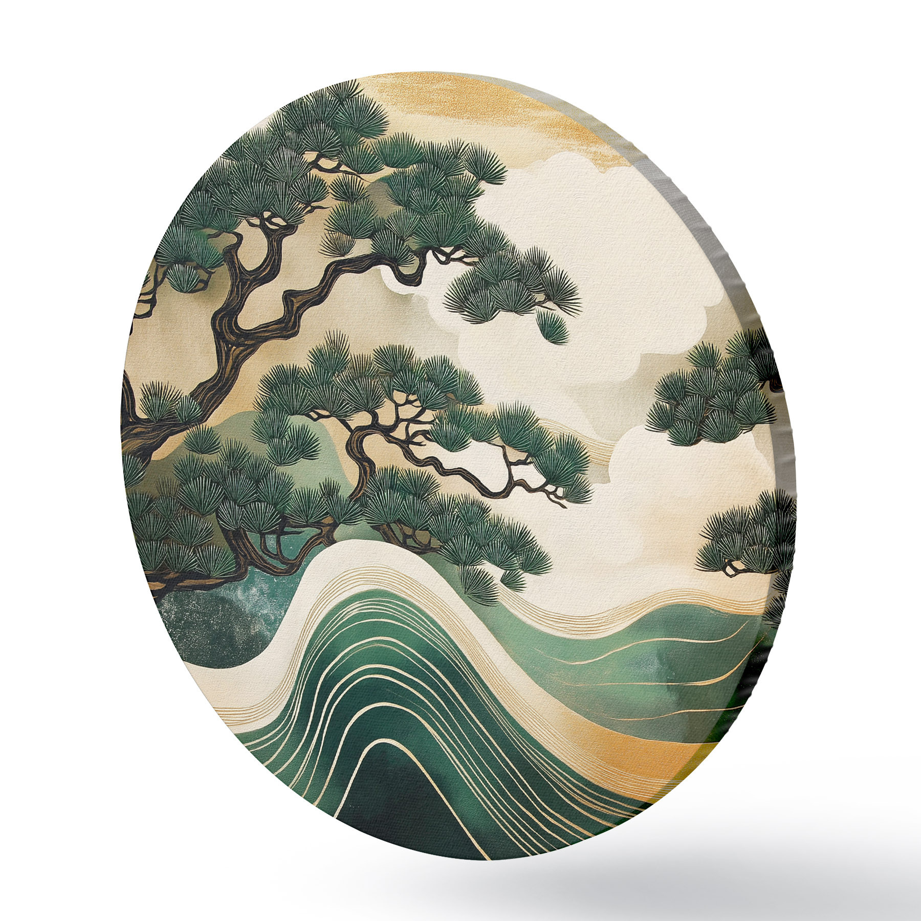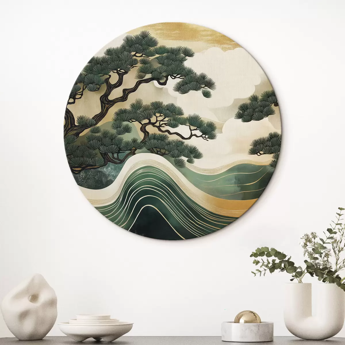 Quadri rotondi Paesaggi astratti con pini, stile cinese r44720