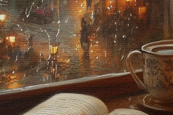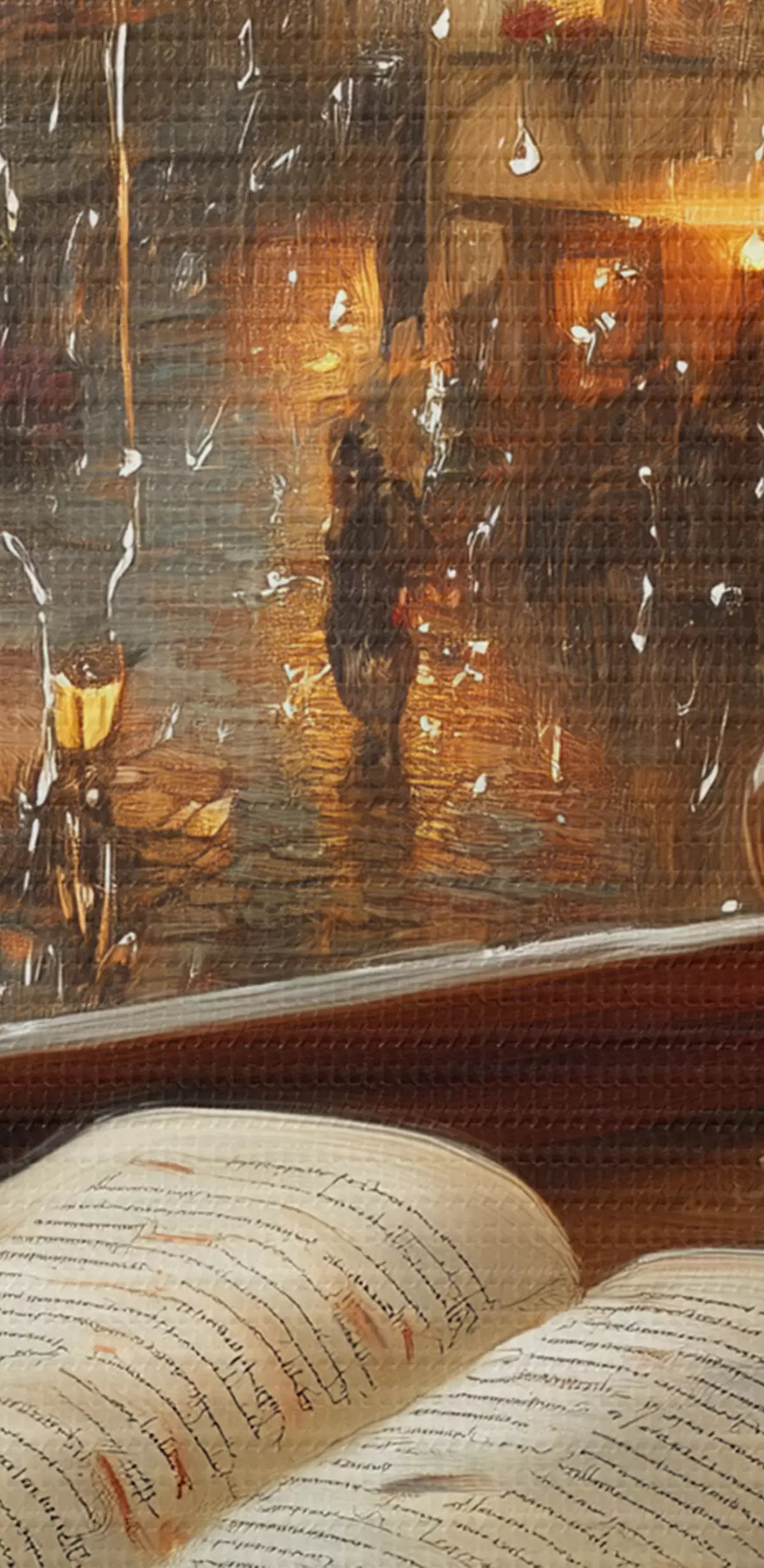 Immagine Libro sul davanzale della finestra, candele, giornata di pioggia, ambiente accogliente Nr r44722