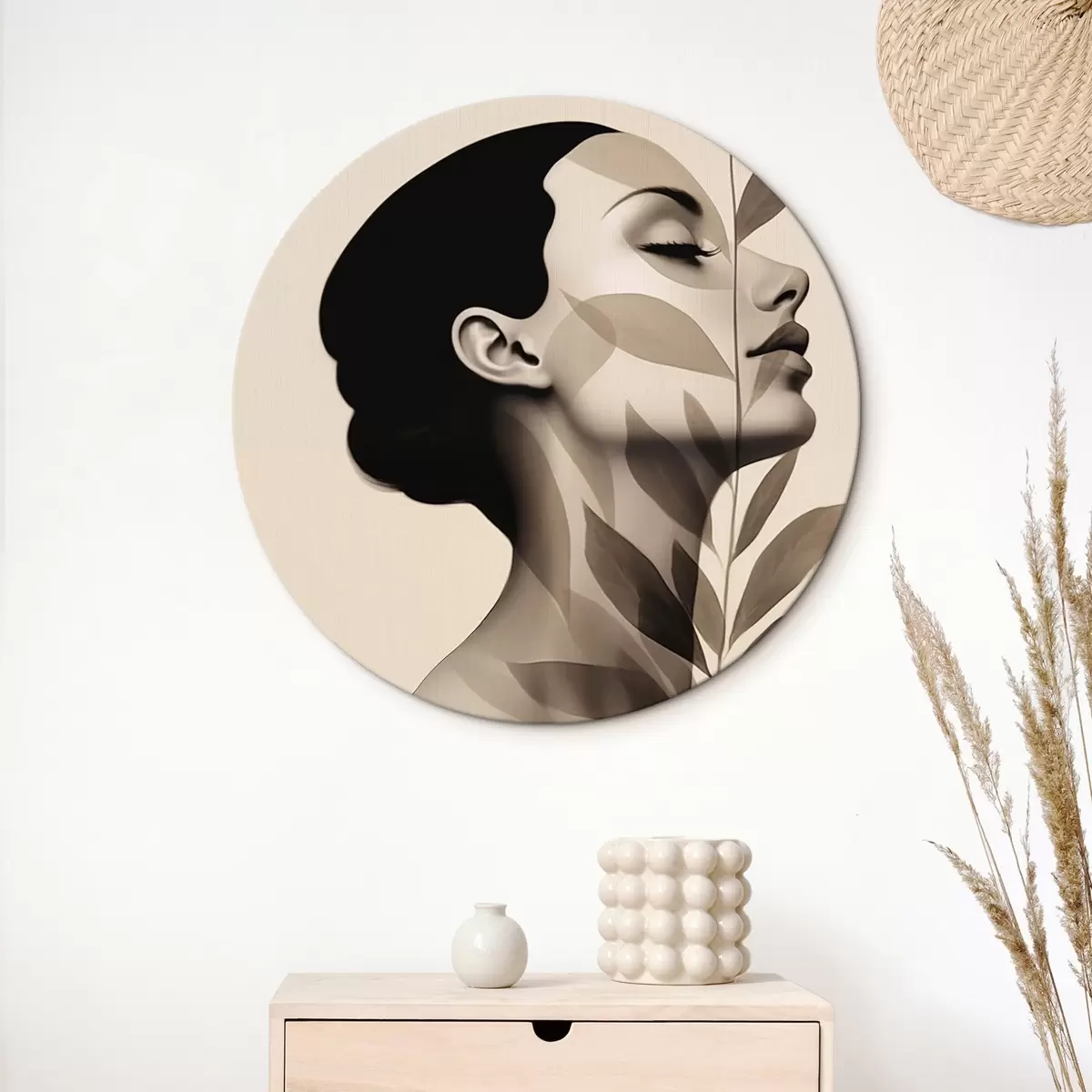 Quadri rotondi Profilo femminile con motivo floreale r44725