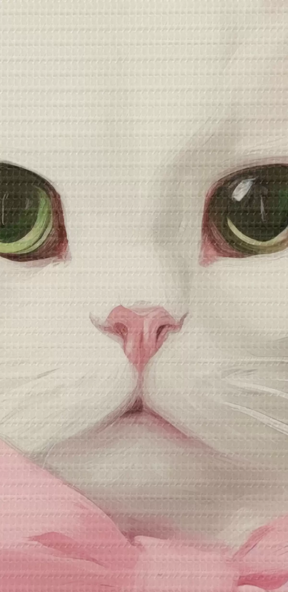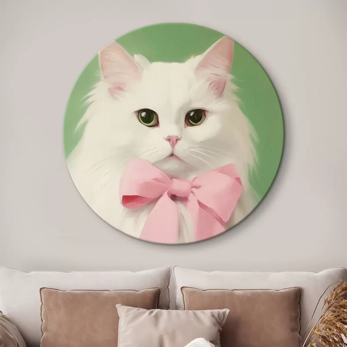 Quadri rotondi Gatto bianco con fiocco rosa r44739