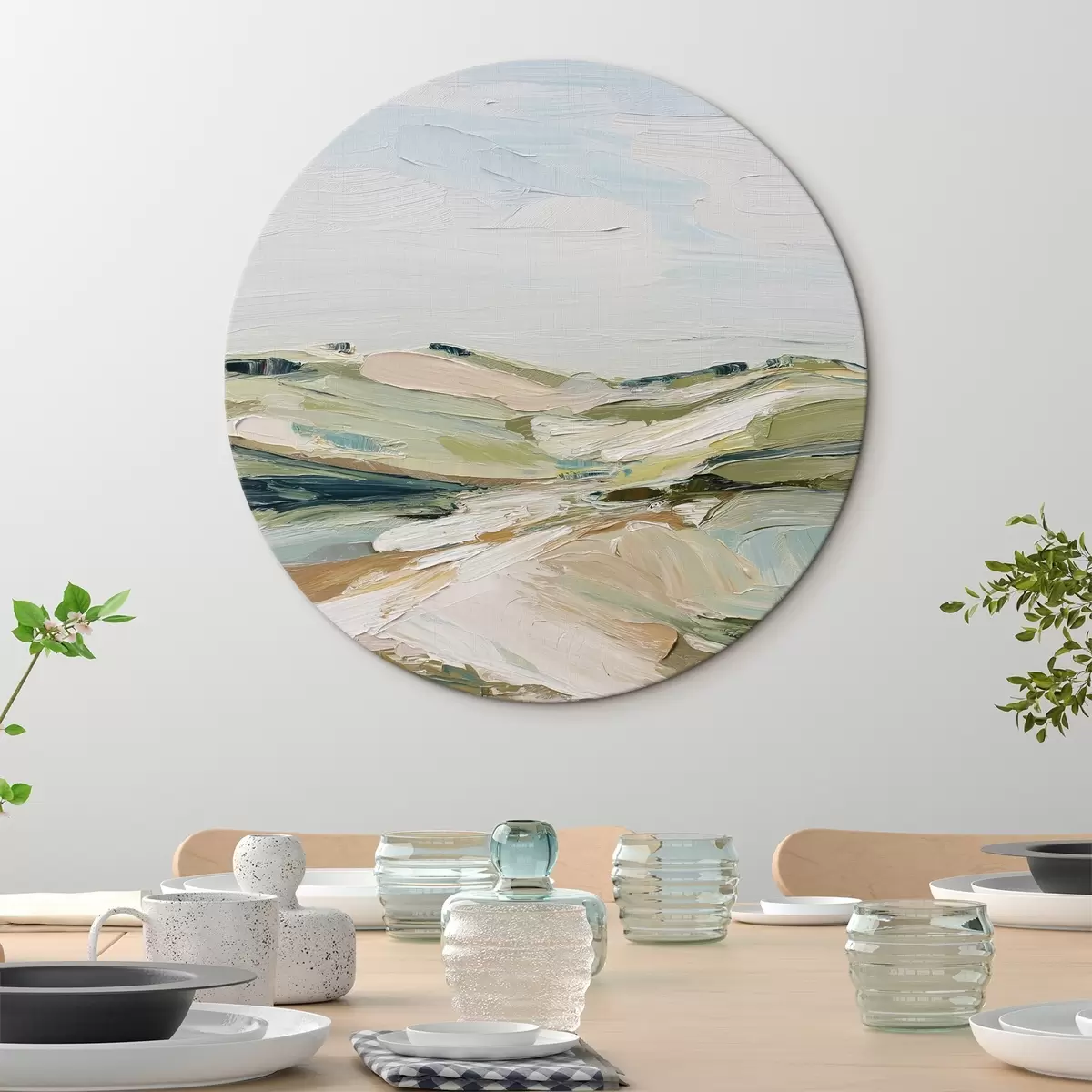 Quadri rotondi Colline astratte dai colori tenui r44754