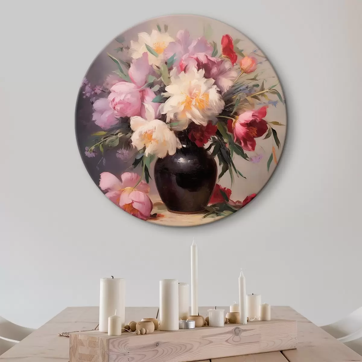 Quadri rotondi Bouquet di peonie in un vaso scuro r44769