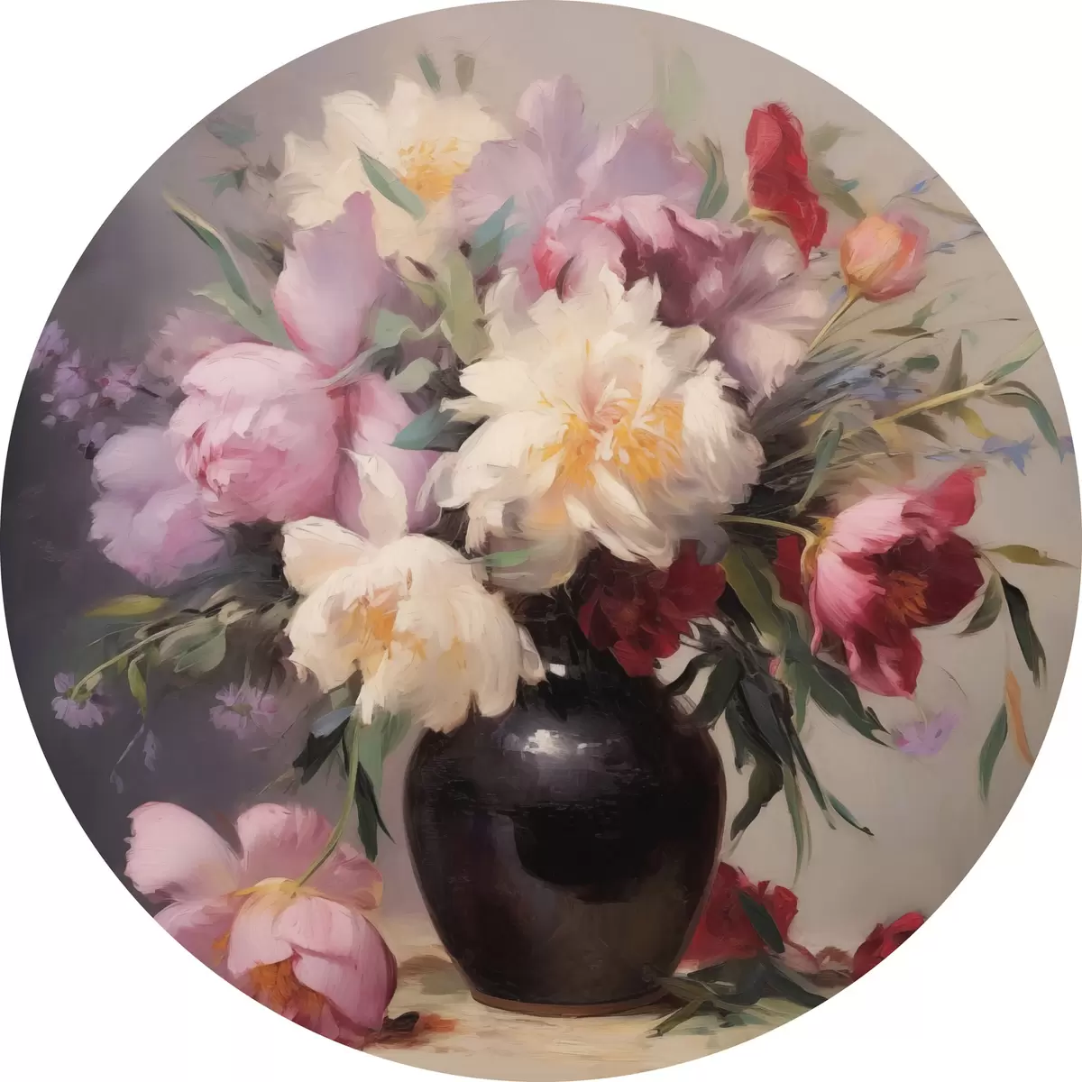 Quadri rotondi Bouquet di peonie in un vaso scuro r44769