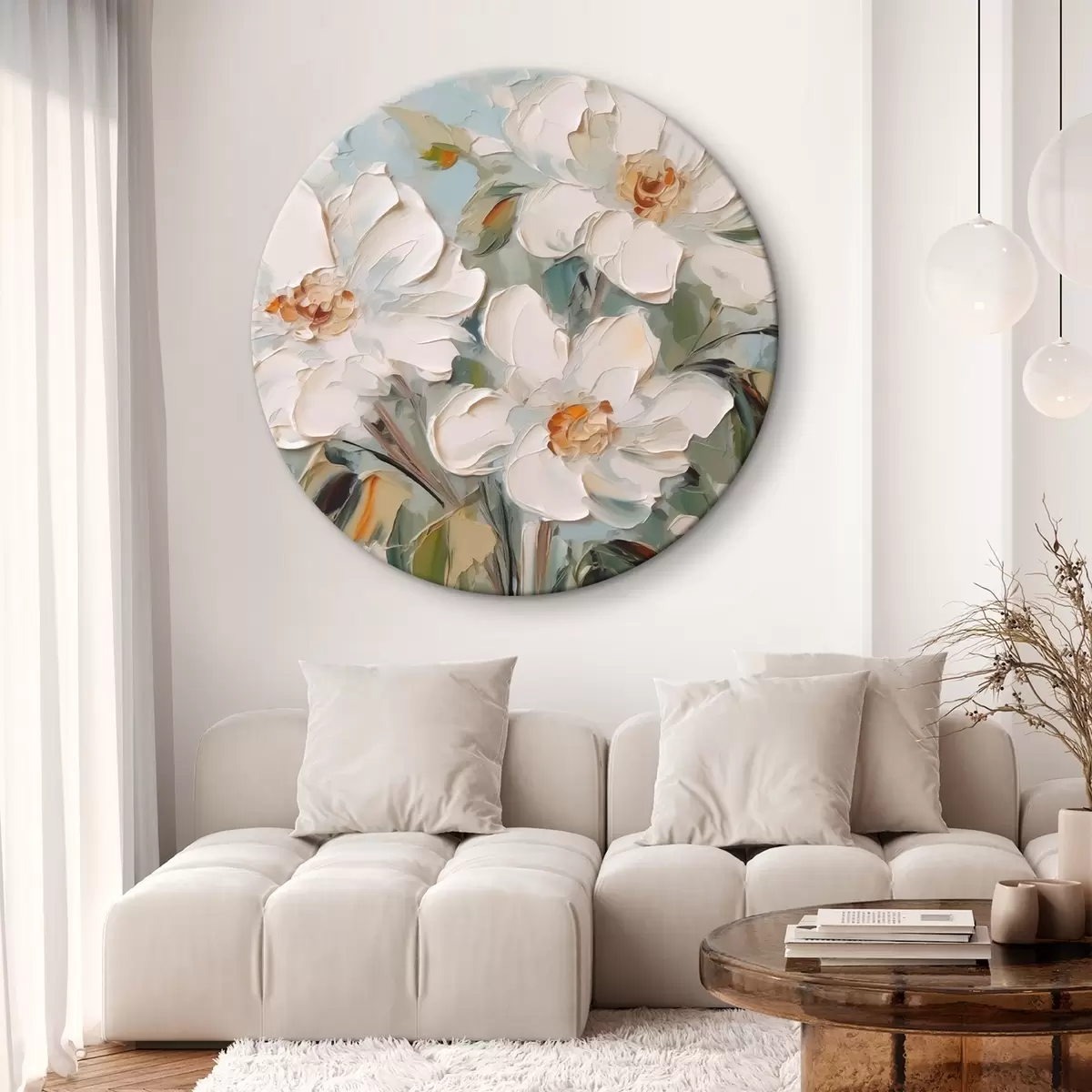Quadri rotondi Pittura a imitazione di fiori bianchi r44775