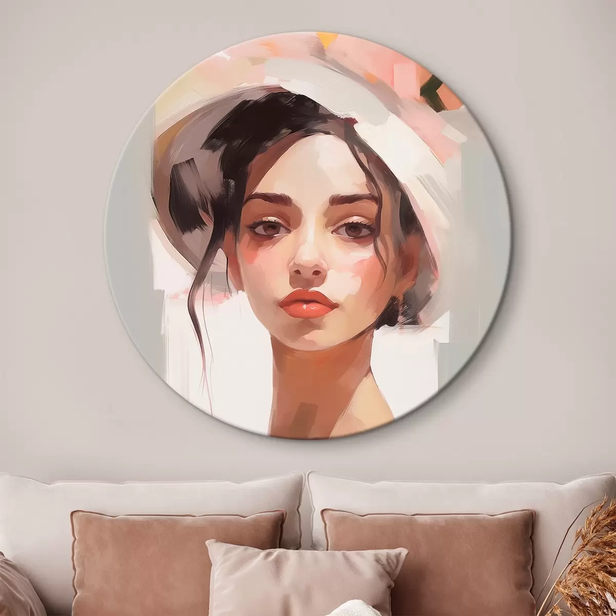 Quadri rotondi Ragazza con cappello imitazione di un dipinto r44778