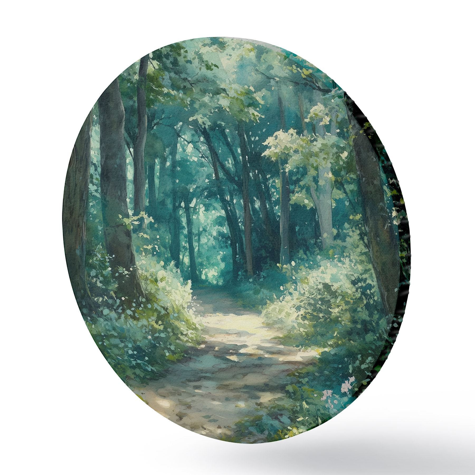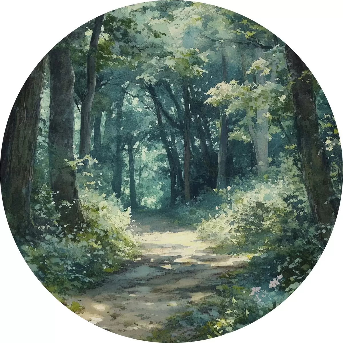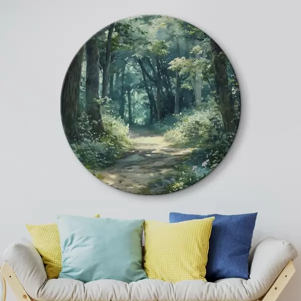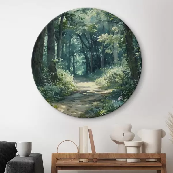 Quadri rotondi Foresta verde con alberi e luce solare r44784