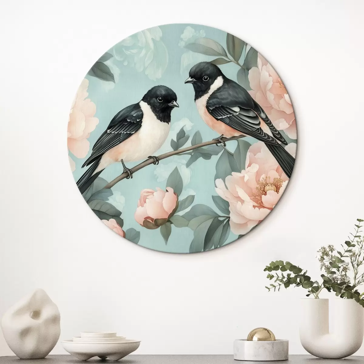 Quadri rotondi Due uccelli sul ramo con peonie r44786