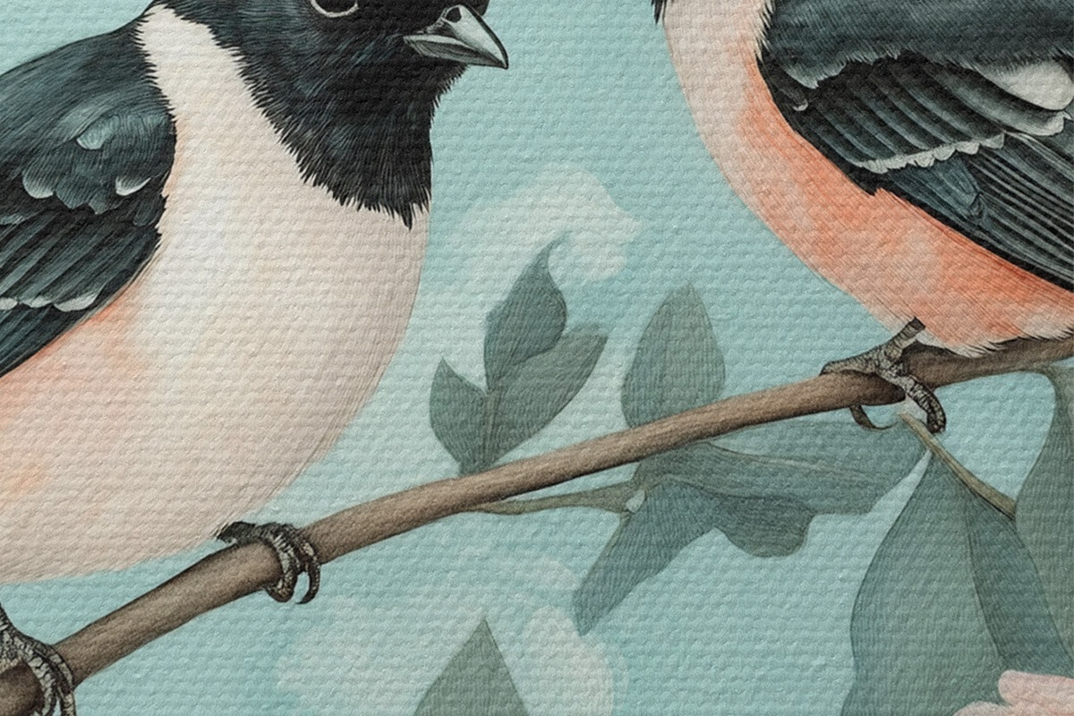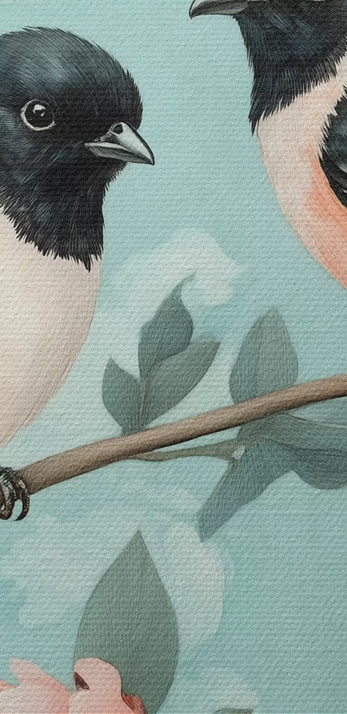Immagine Due uccelli sul ramo con peonie Nr r44786