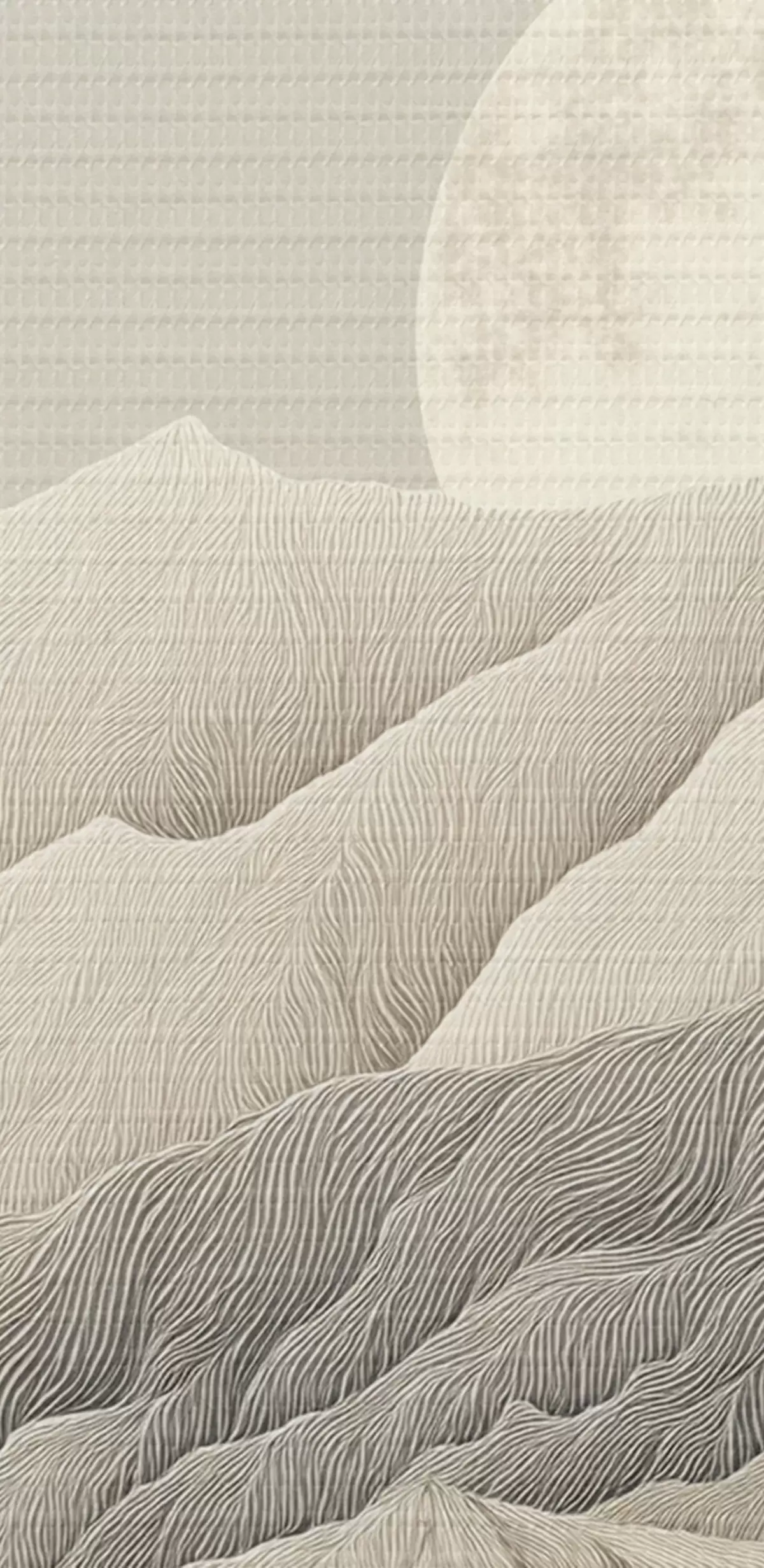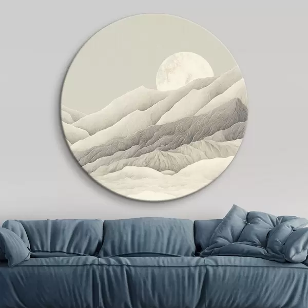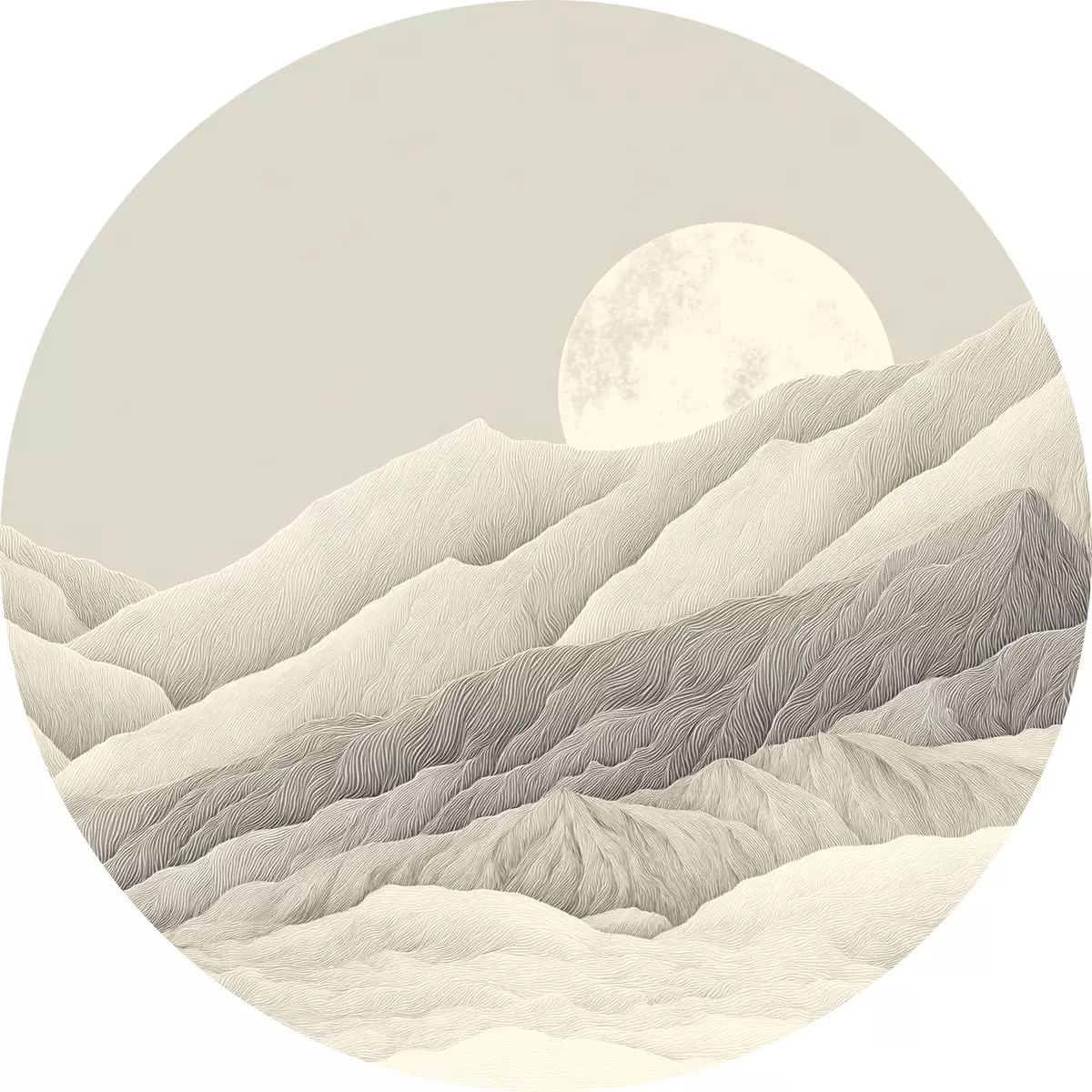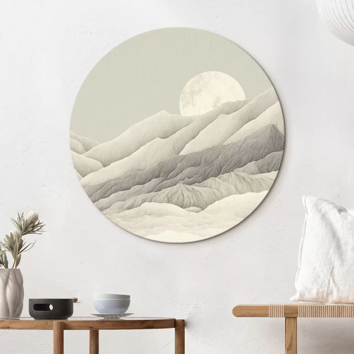 Quadri rotondi Montagne con luna, disegno dettagliato r44788