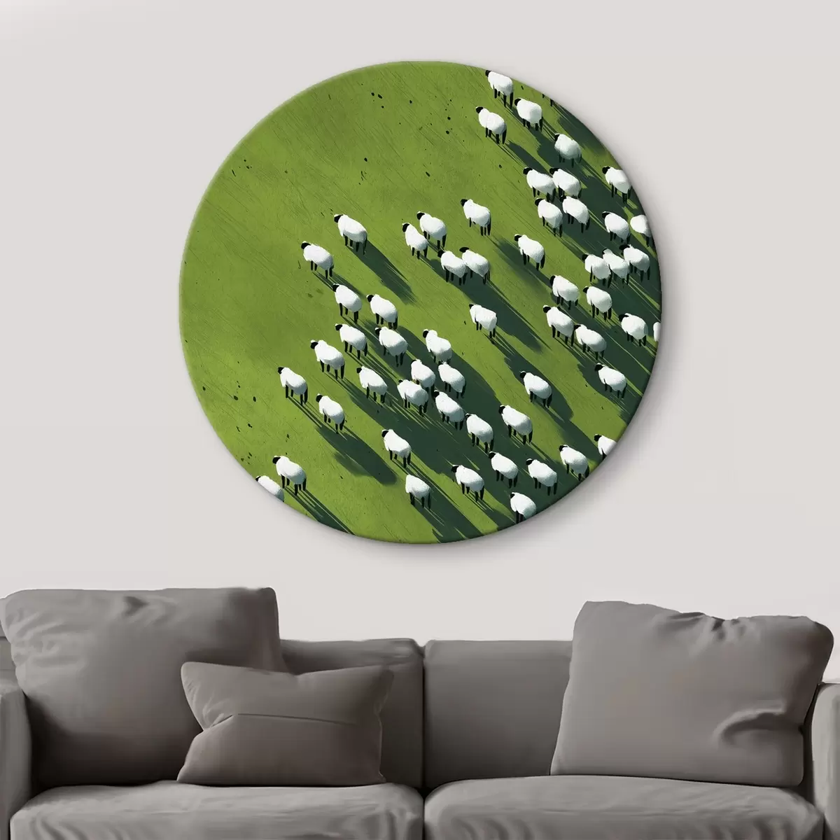 Quadri rotondi Campo verde con un gregge di pecore, astrazione, veduta aerea r44793