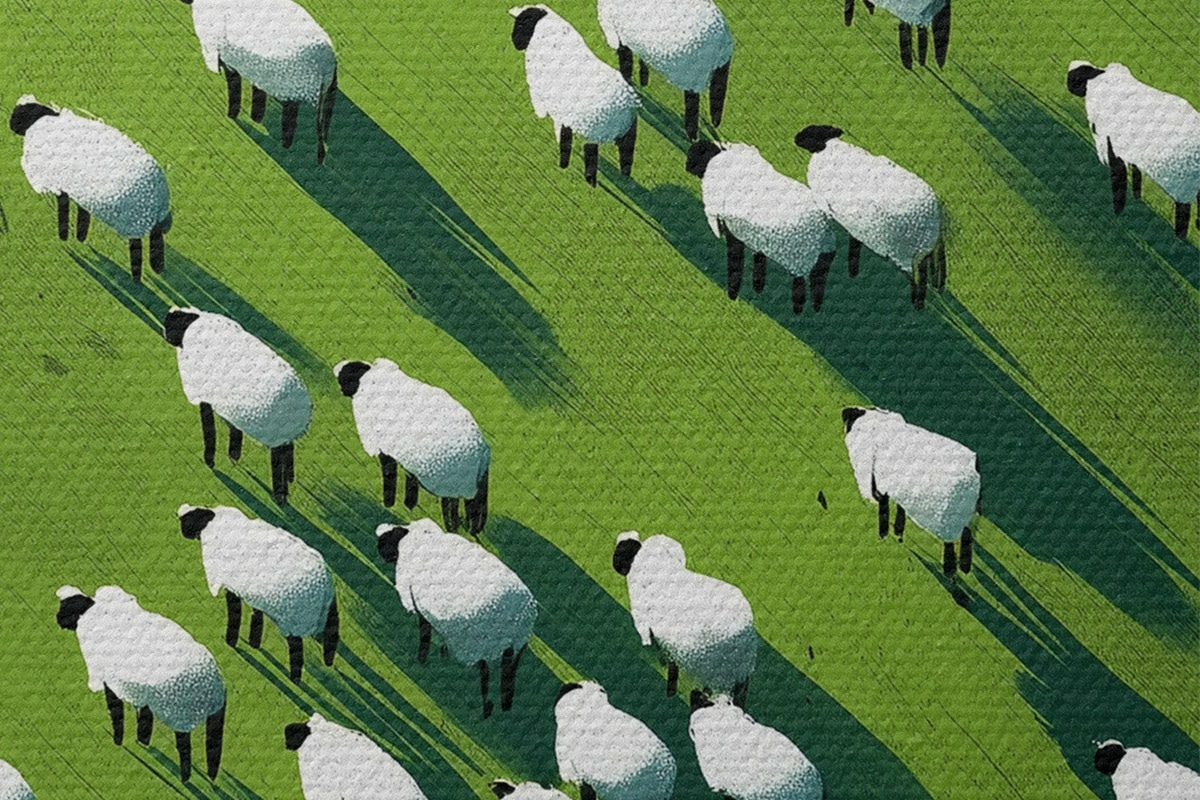 Immagine Campo verde con un gregge di pecore, astrazione, veduta aerea Nr r44793