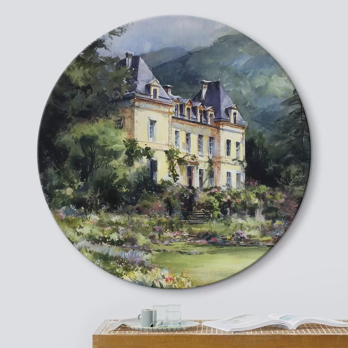 Quadri rotondi Castello francese circondato da un giardino di lavanda r44797