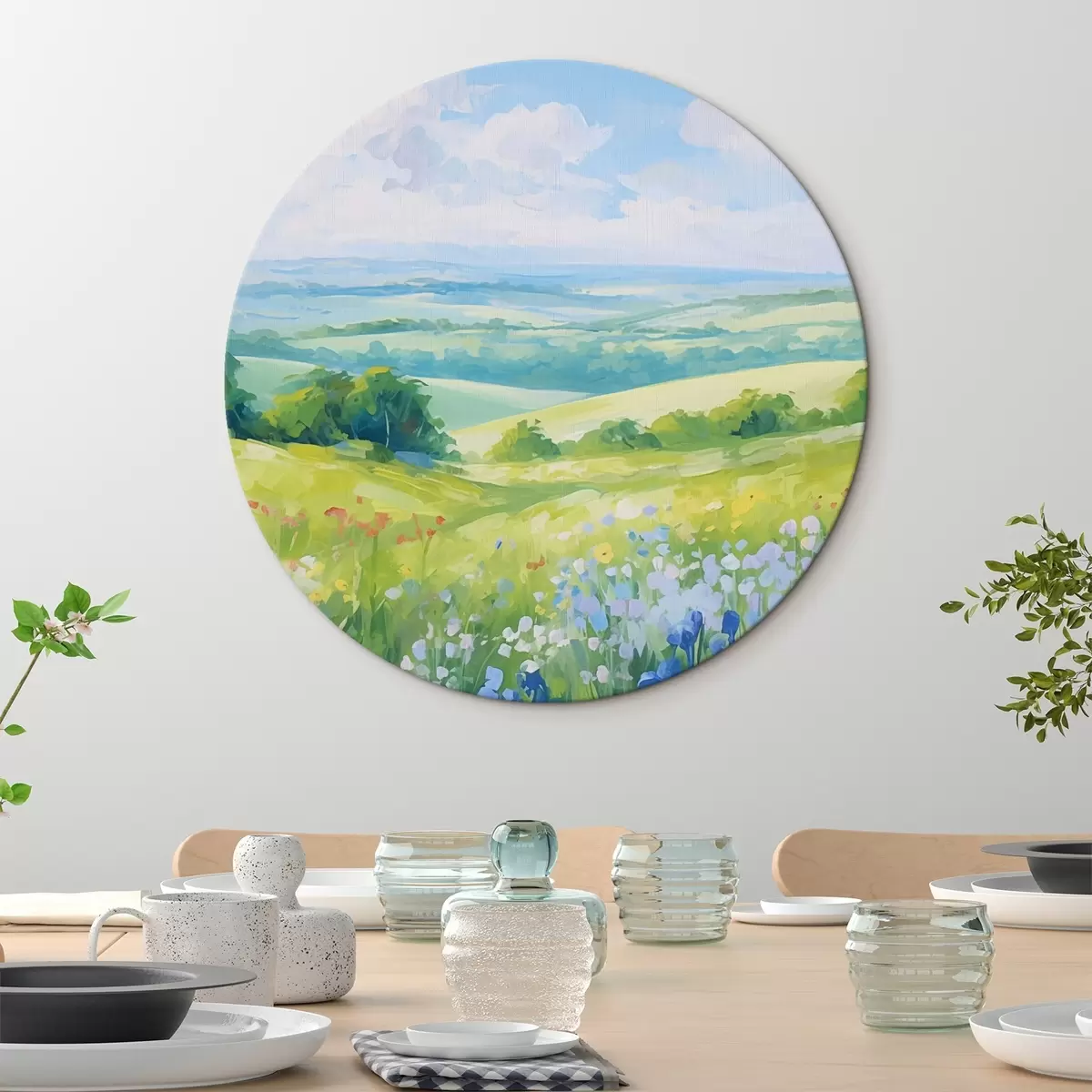 Quadri rotondi Collina fiorita con vista estiva r44813