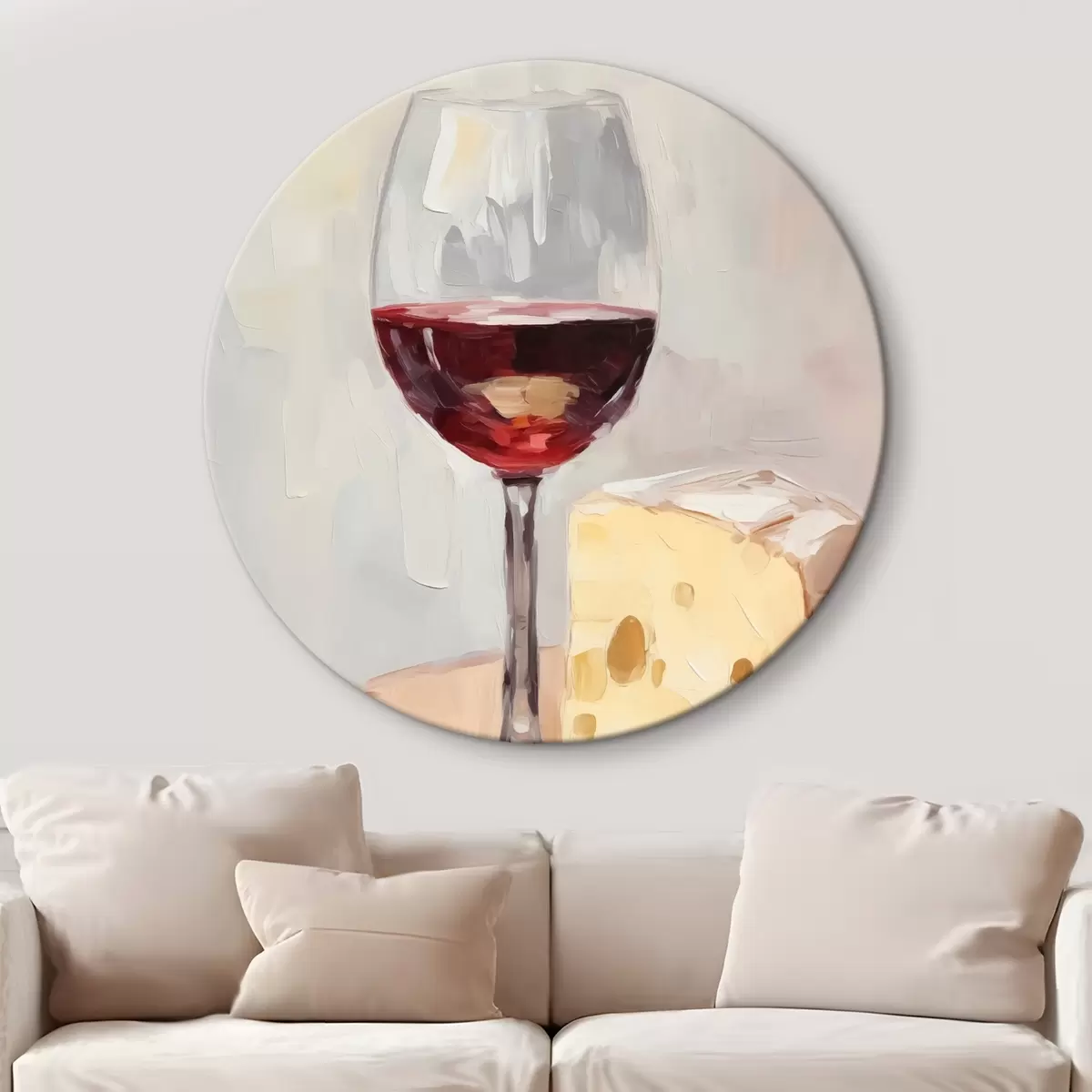 Quadri rotondi Bicchiere di vino vicino al formaggio r44829