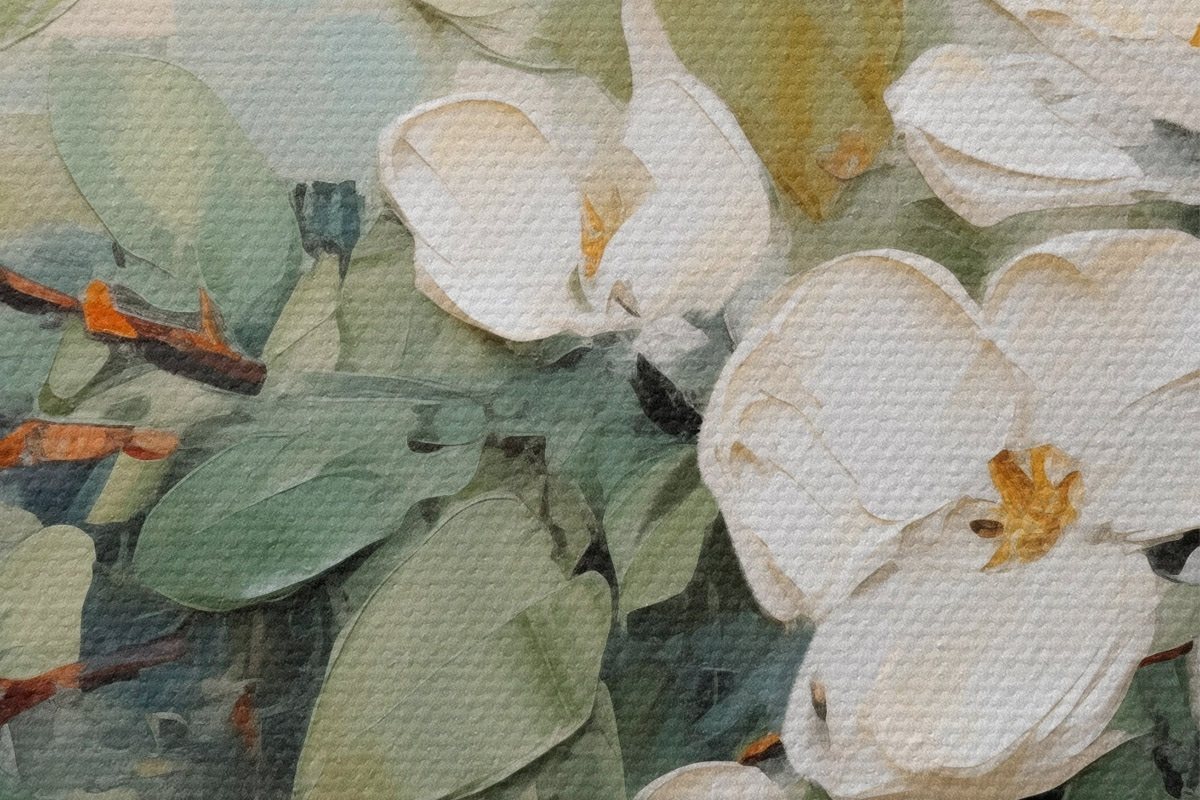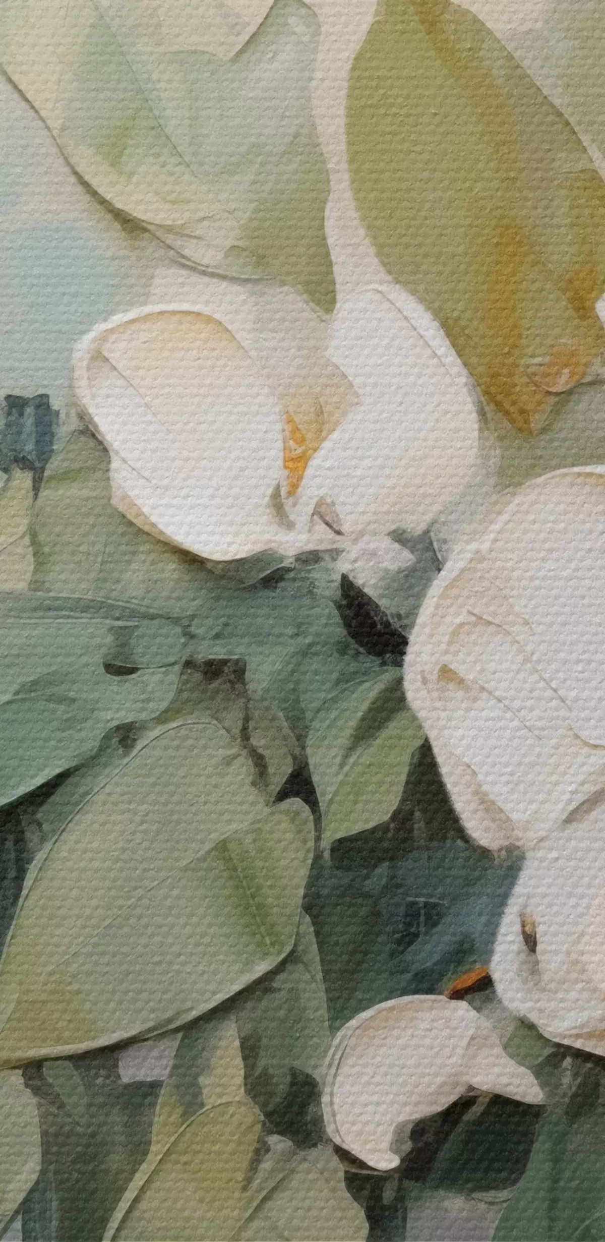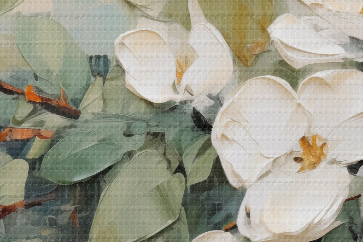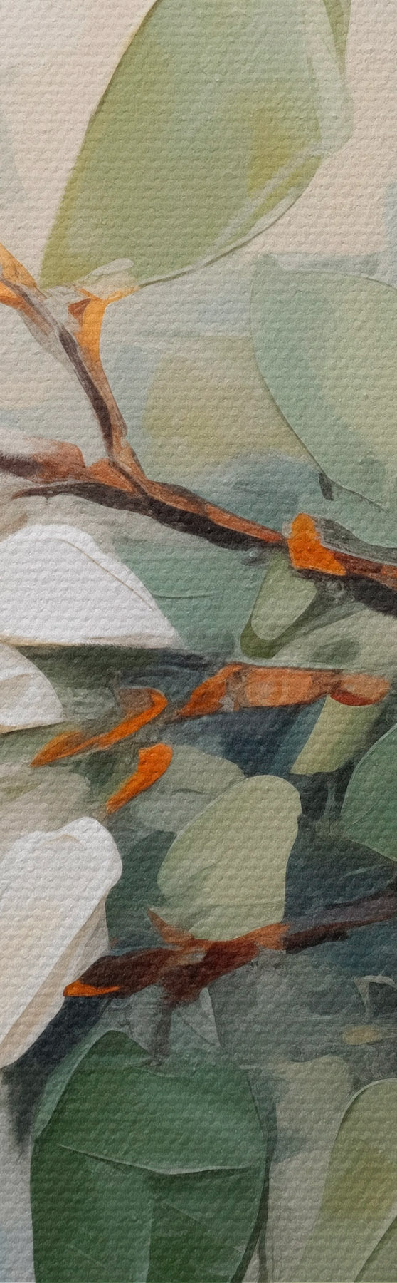 Immagine Fiori di magnolia con foglie verdi su un ramo, stile impasto testurizzato, tavolozza di colori tenui Nr r44853