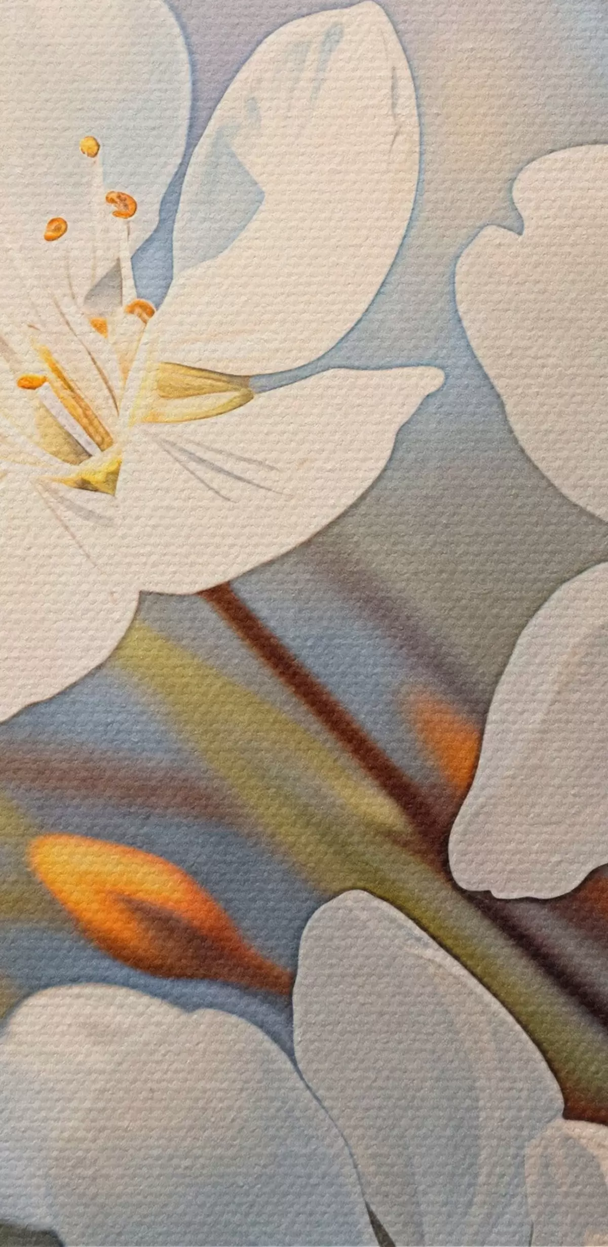 Immagine Fiori di ciliegio bianchi strutturati in stile acquerello, petali delicati, stagione primaverile Nr r44859