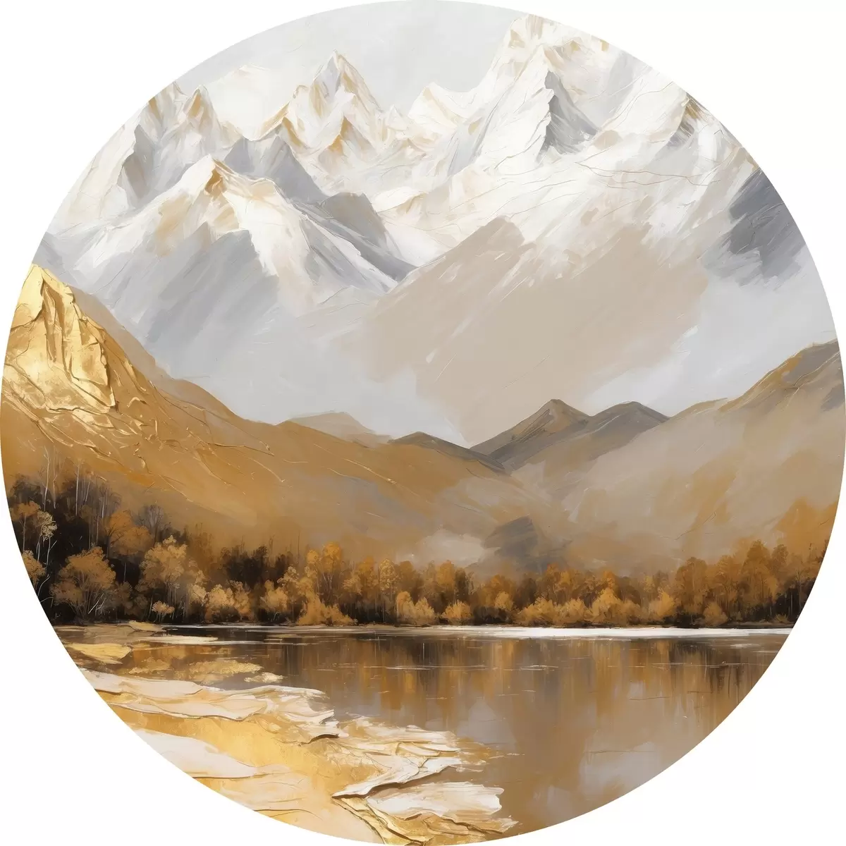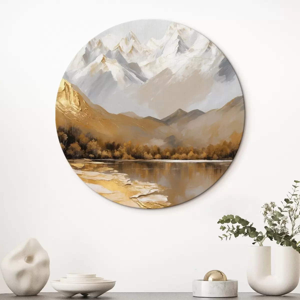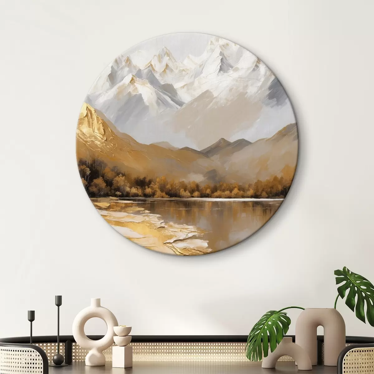 Quadri rotondi Paesaggio montano con lago dai colori caldi r44877