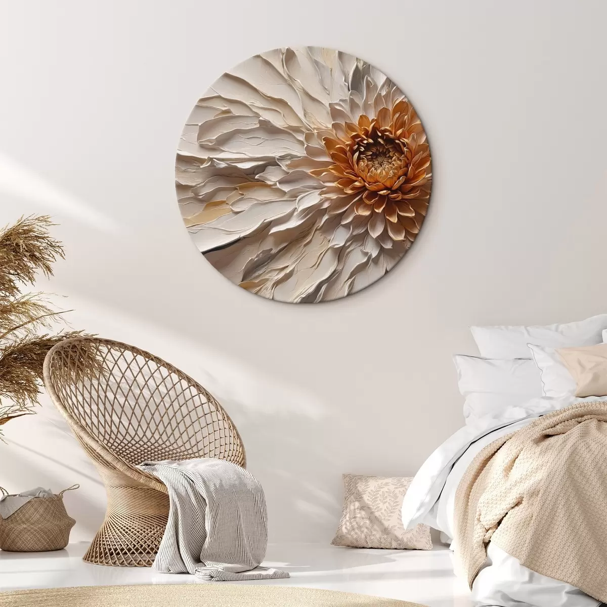 Quadri rotondi Fiore volumetrico con petali cremosi e nucleo caldo r44878