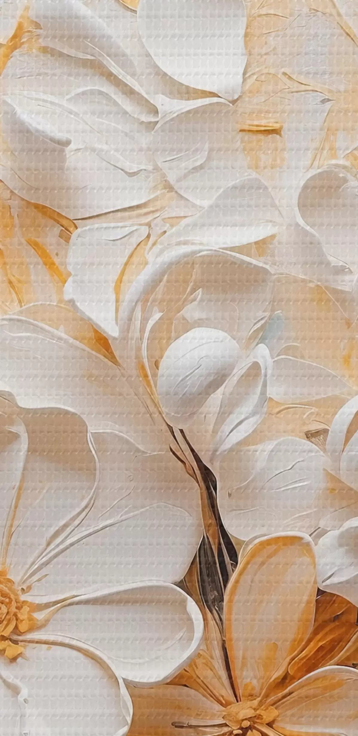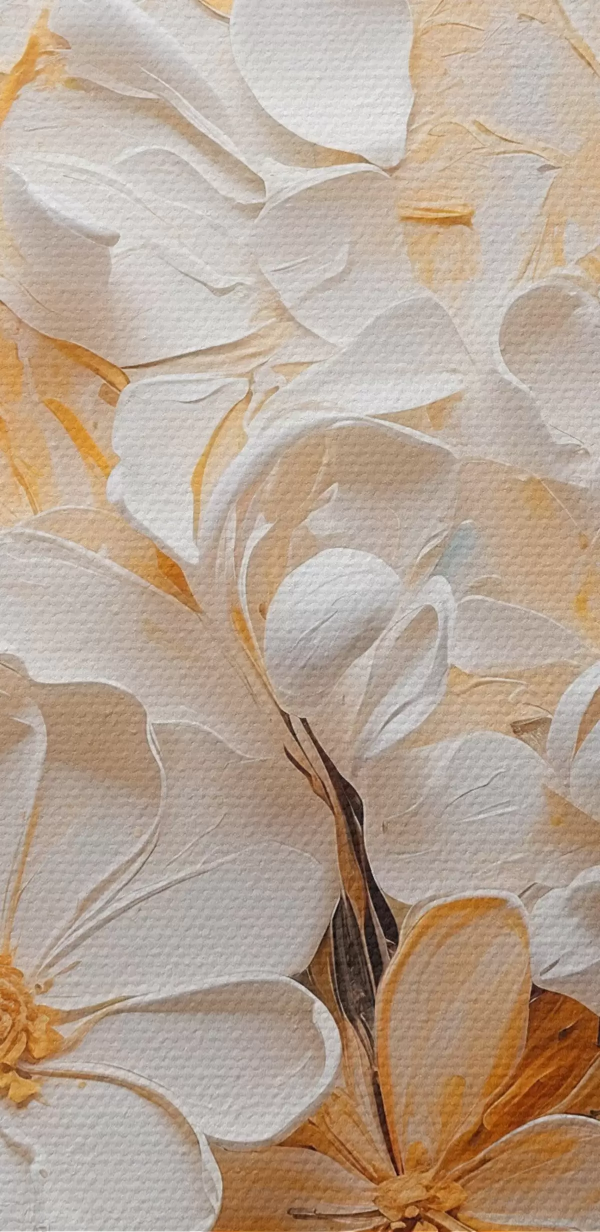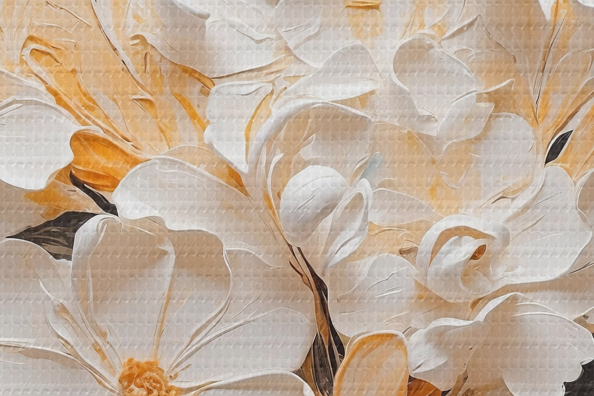 Immagine Fiori bianchi e pesca su sfondo blu con colori pastello Nr r44879