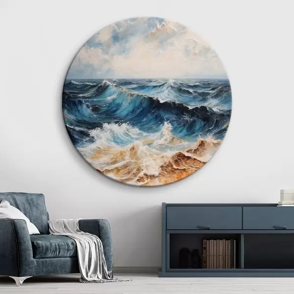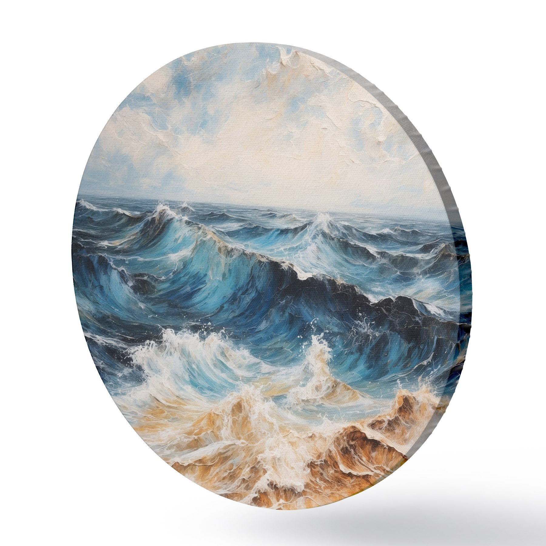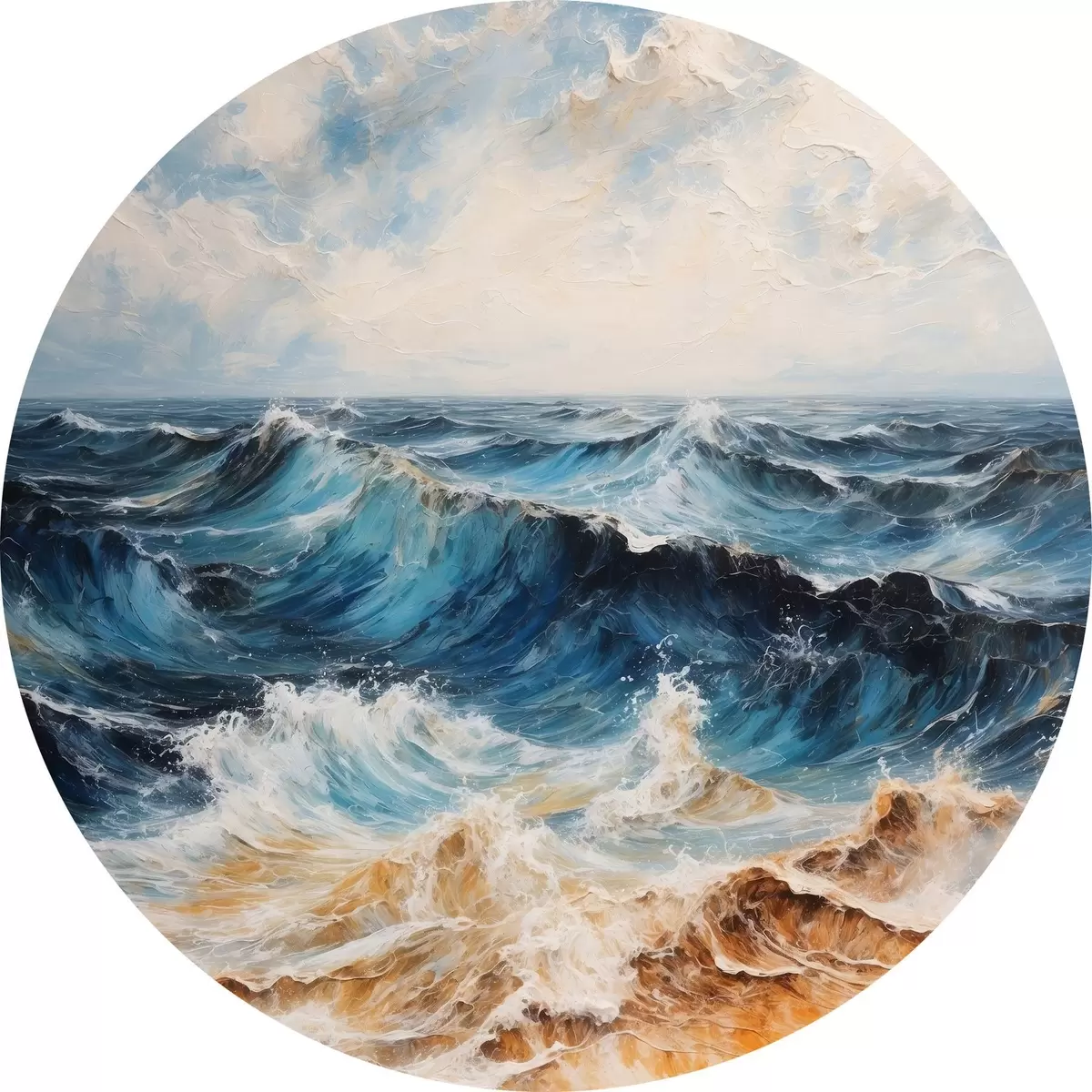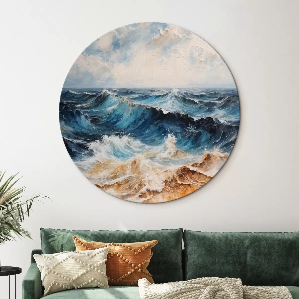 Quadri rotondi Mare agitato con onde sotto un cielo limpido r44881