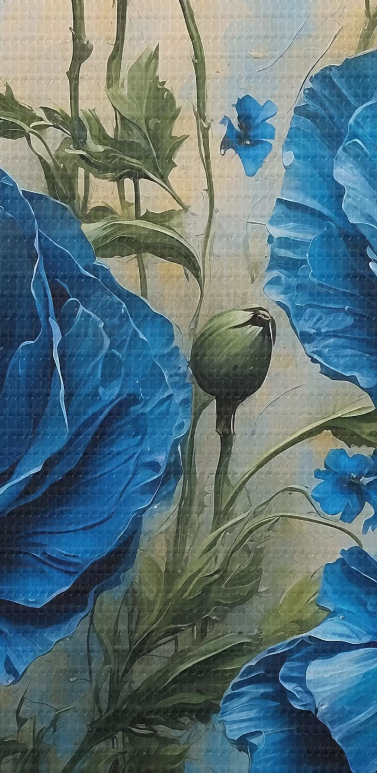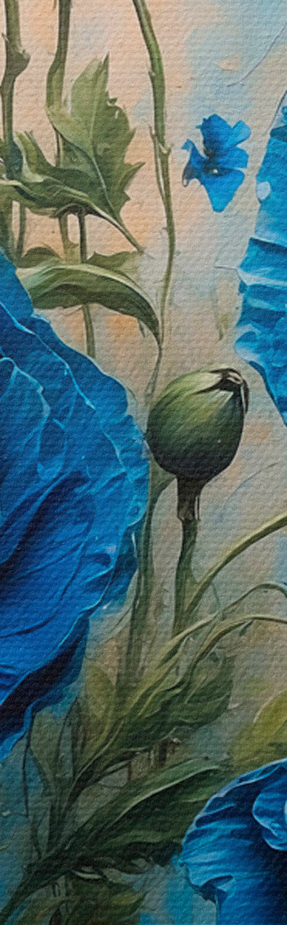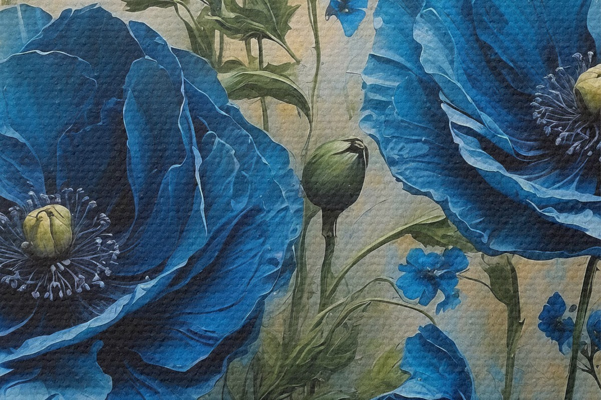 Immagine Papaveri blu su sfondo pastello con foglie Nr r44882
